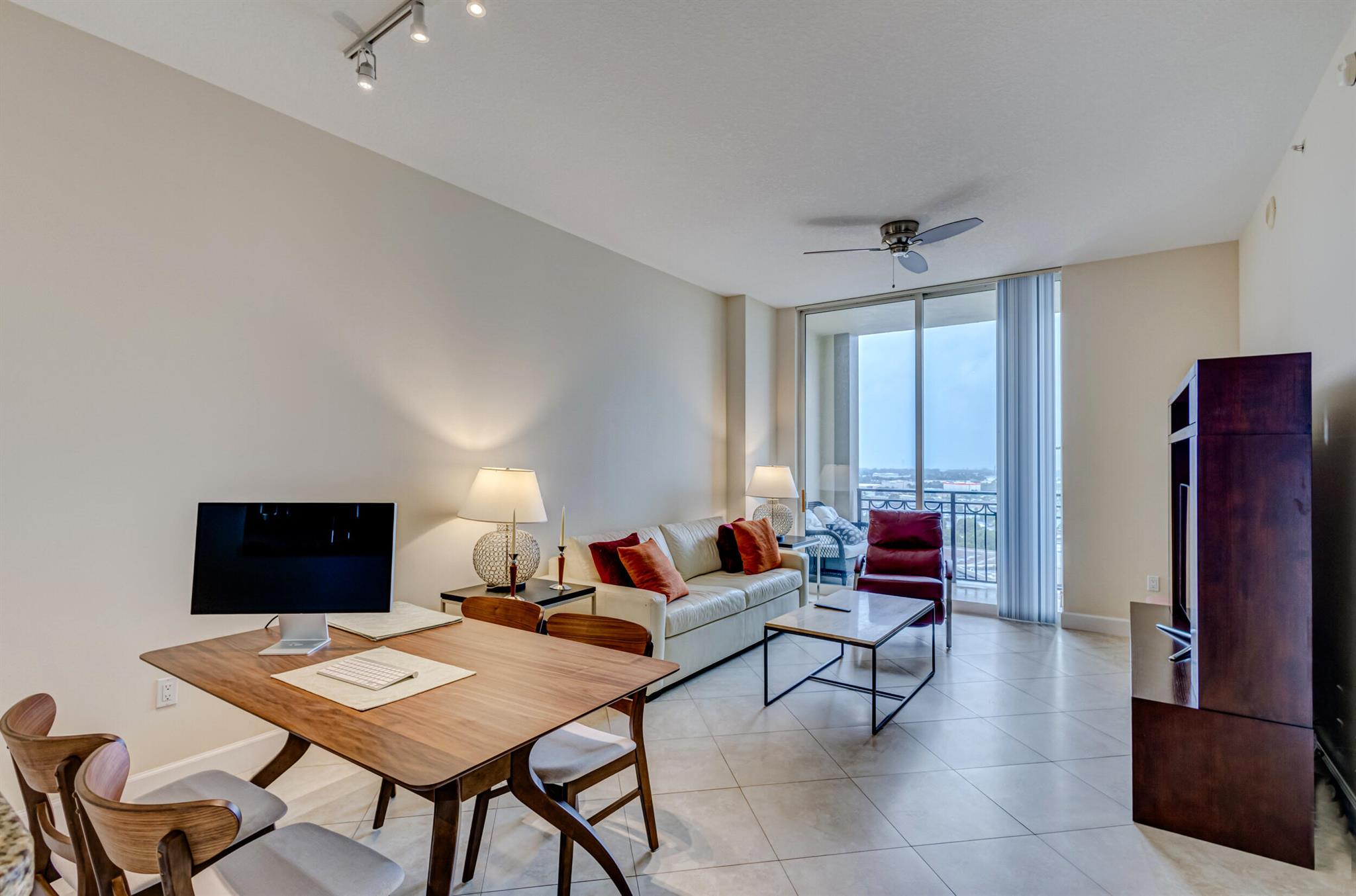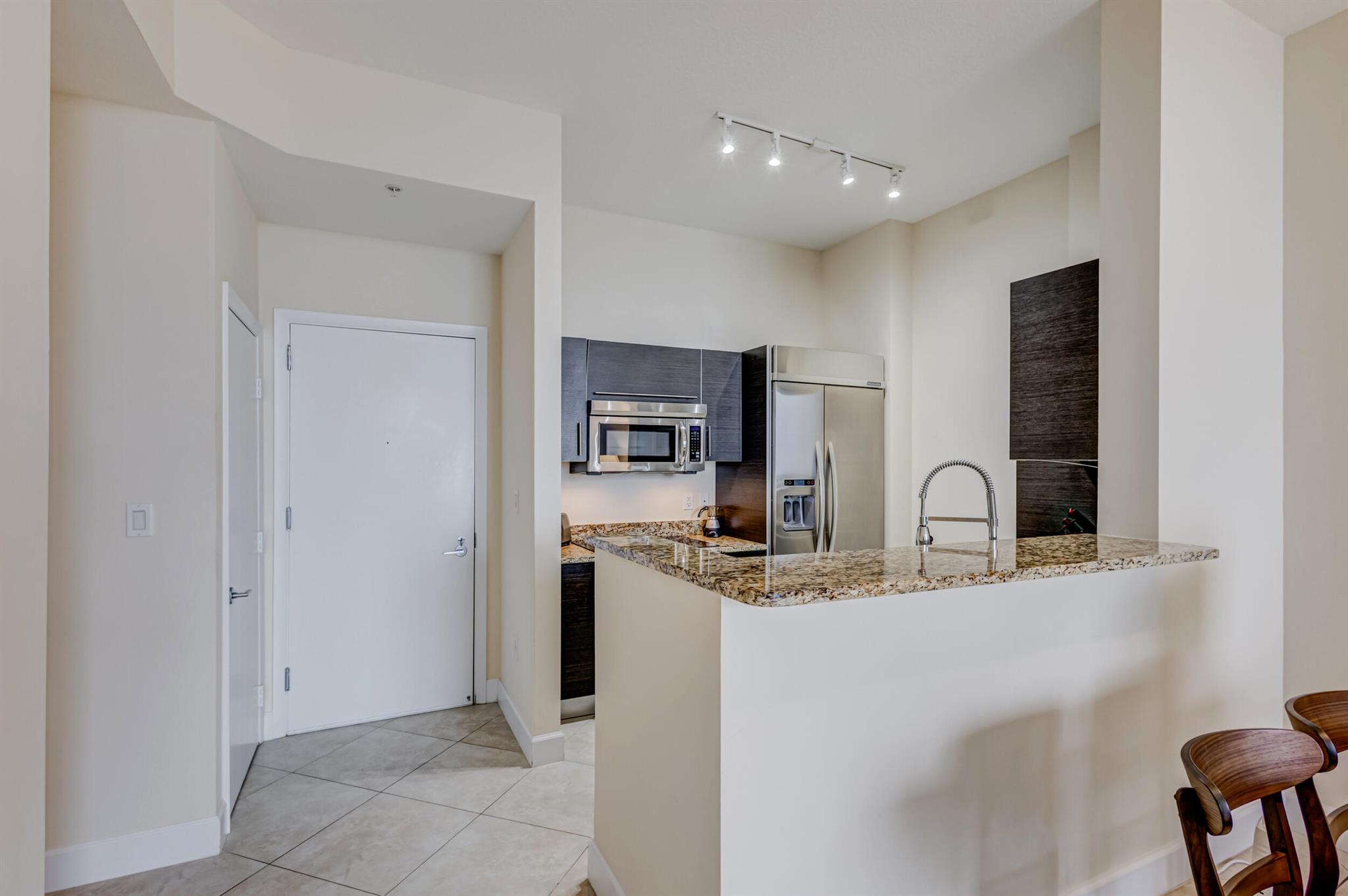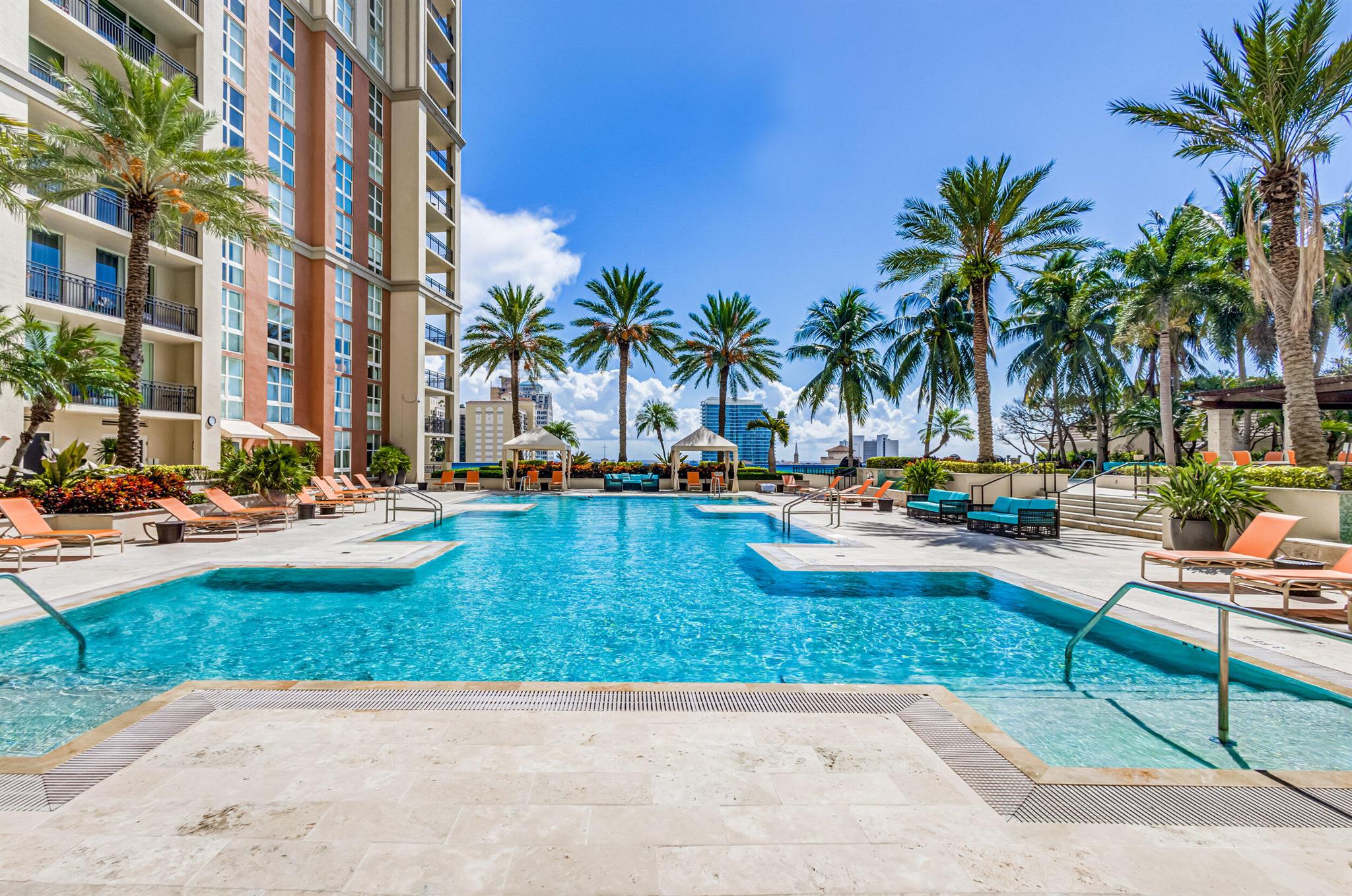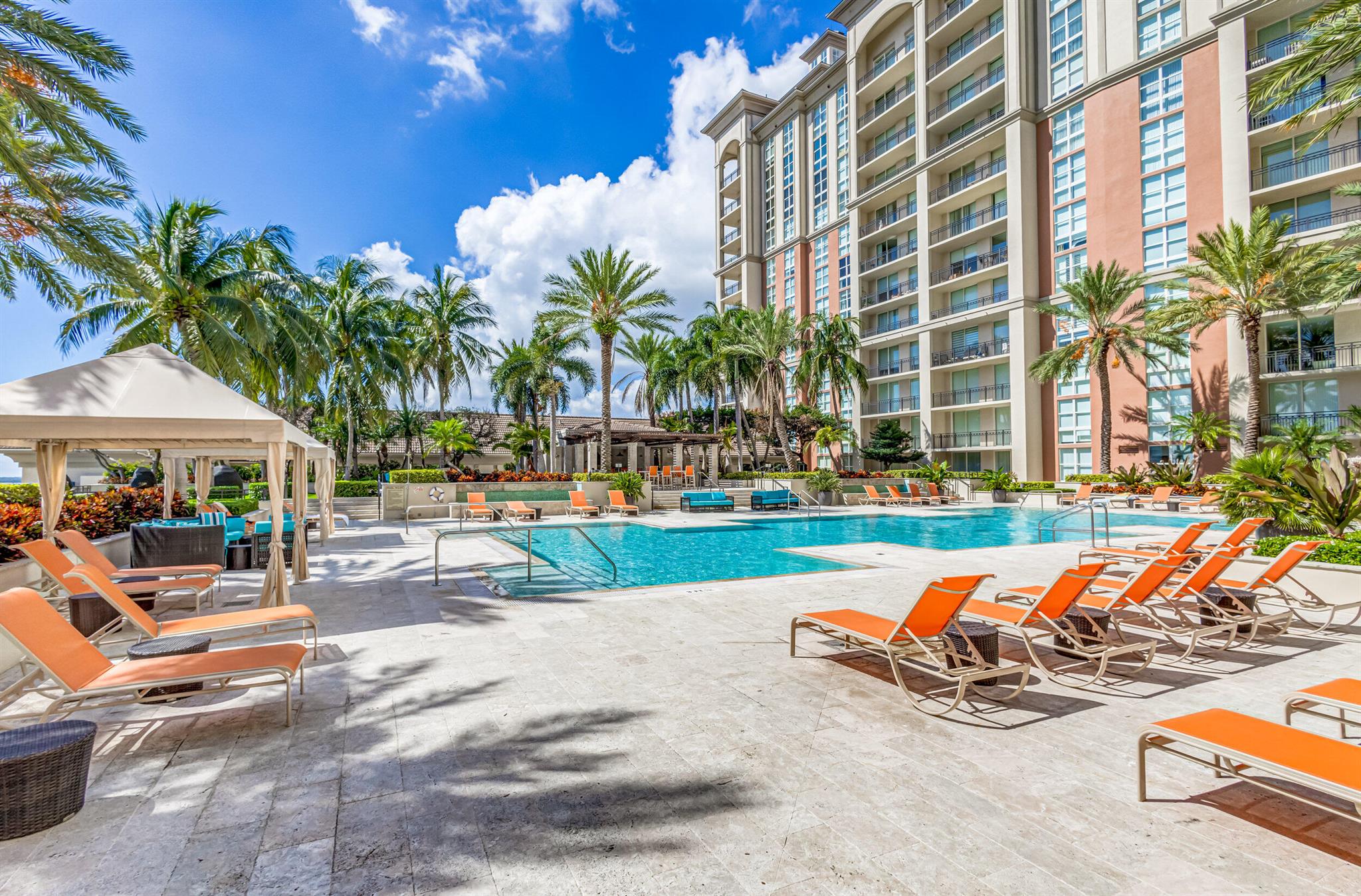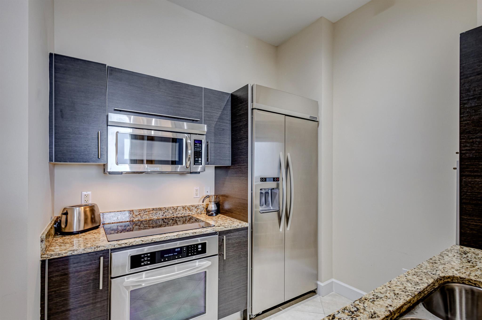Beautiful LOWER PENTHOUSE residence features 1 bedroom, 1 bath, completely tiled with all impact windows throughout! This immaculate condo is equipped with modern kitchen cabinets, beautiful granite countertops, stainless steel Kitchen Aid appliances, Bosch air conditioner, and laundry closet with full size front load Samsung washer and dryer. Live in luxury as you enjoy your morning coffee or evening views of Downtown West Palm Beach from your covered and tiled balcony. Discover South Florida living in the prestigious Cityplace South Tower. This resort style building offers first class amenities including 24-hour front desk, valet parking, heated infinity pool and spa, state-of-the-art fitness center, lounge, summer kitchen and more!