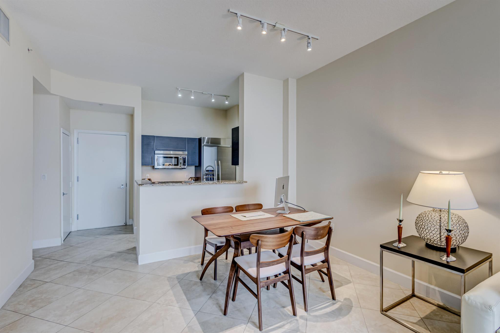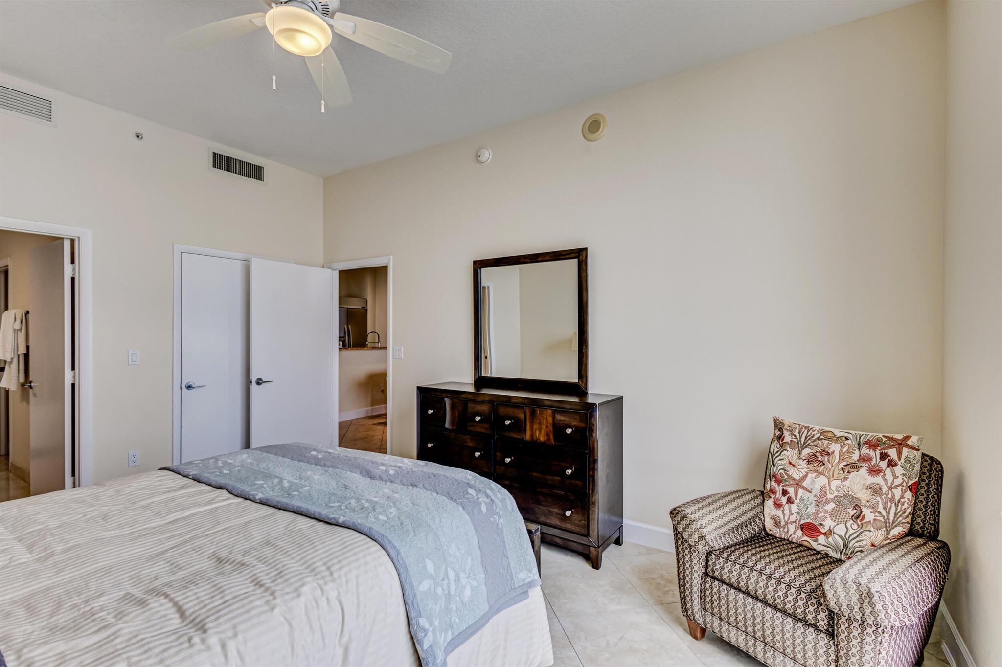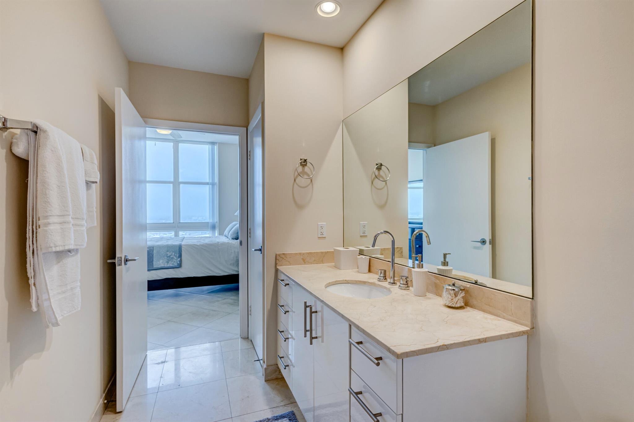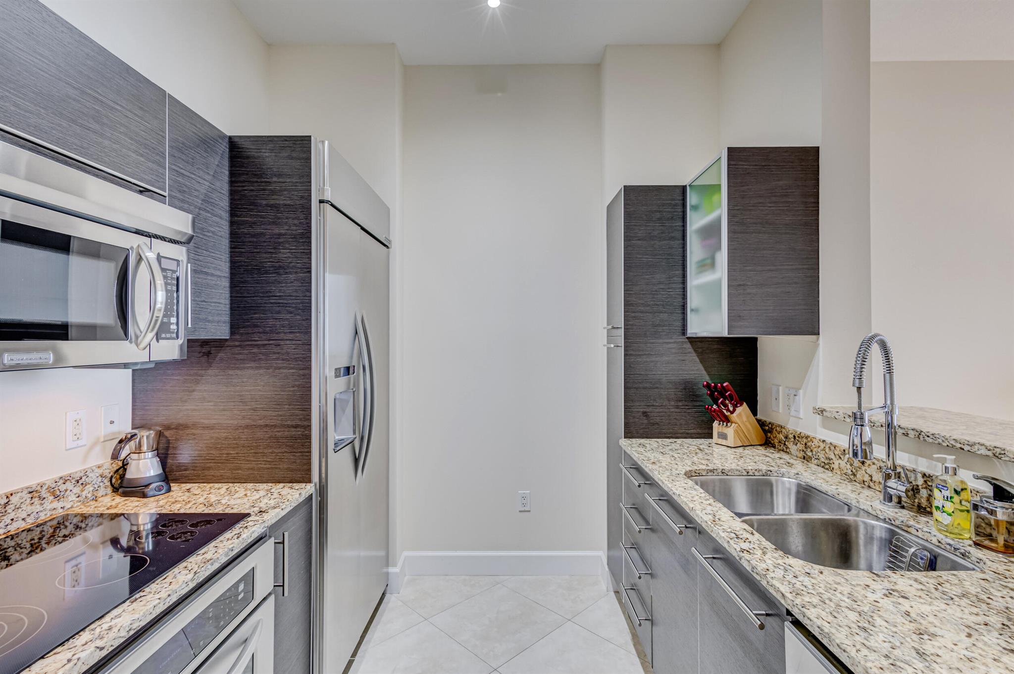 Beautiful LOWER PENTHOUSE residence features 1 bedroom, 1 bath, completely tiled with all impact windows throughout! This immaculate condo is equipped with modern kitchen cabinets, beautiful granite countertops, stainless steel Kitchen Aid appliances, Bosch air conditioner, and laundry closet with full size front load Samsung washer and dryer. Live in luxury as you enjoy your morning coffee or evening views of Downtown West Palm Beach from your covered and tiled balcony. Discover South Florida living in the prestigious Cityplace South Tower. This resort style building offers first class amenities including 24-hour front desk, valet parking, heated infinity pool and spa, state-of-the-art fitness center, lounge, summer kitchen and more!