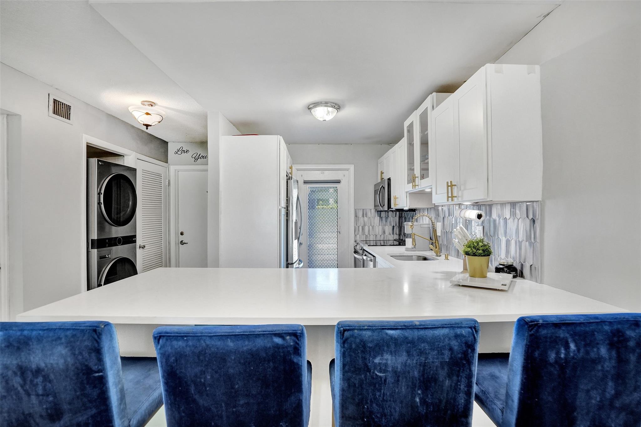 Move-in Ready 1st floor w/ Laundry in Unit. This beautiful updated condo features an open layout kitchen w/ white cabinets, marble countertops, stainless steel appliances & tile backsplash. Located across from the community pool & amenities. Updated bathrooms, walk-in closets, screened balcony, shutters, and vinyl floor throughout. Perfect as a primary residence, vacation home, or investment—Rent immediately! Community offers heated pool, newer roof, new asphalt, and includes water & trash. Only 2 miles to the beach! No age restrictions.