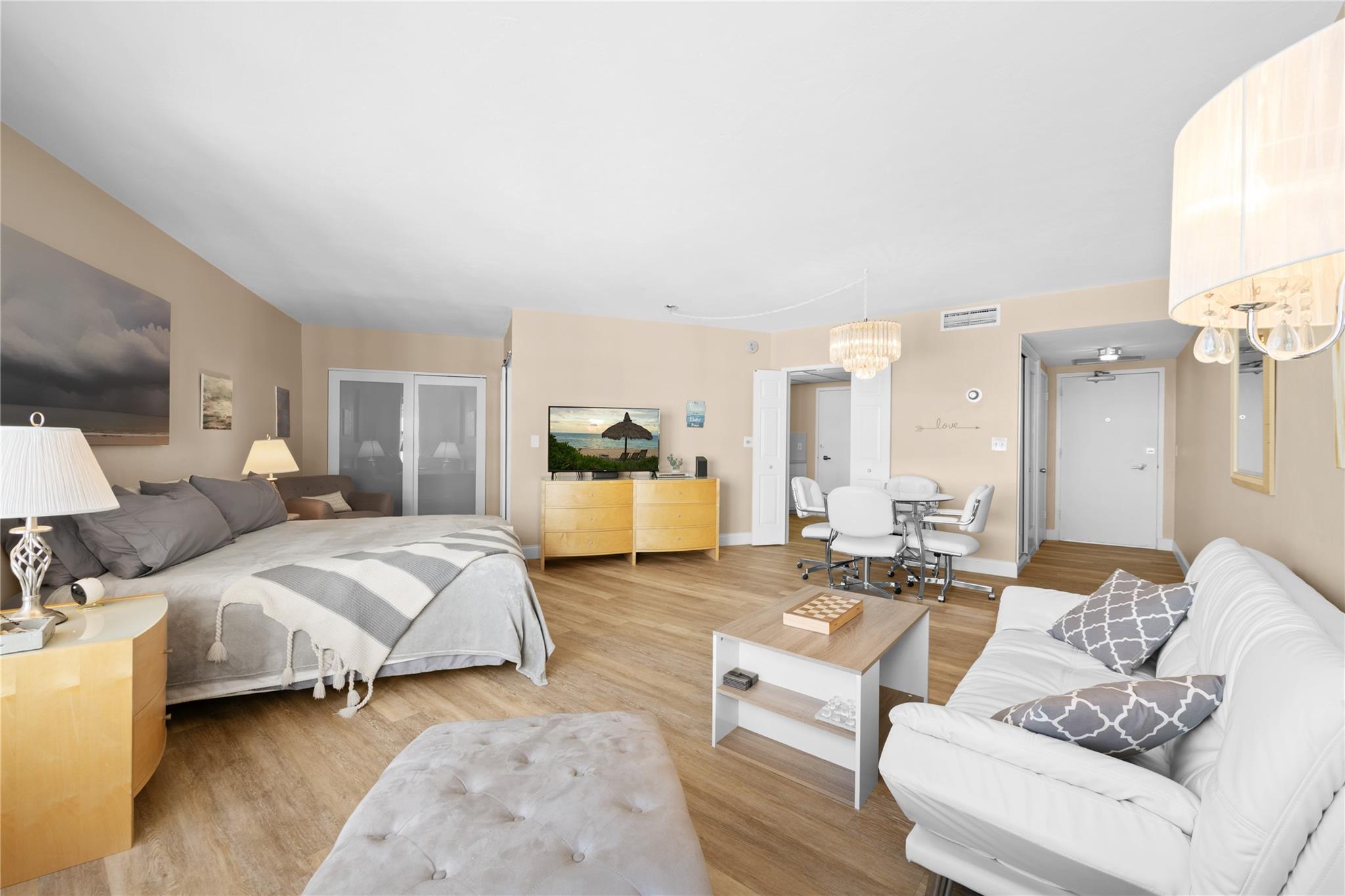 Step into your perfect oceanfront retreat without the hefty price tag! This spacious studio offers direct ocean views the moment you walk in. The open layout feels bright and inviting, featuring large impact windows that fill the space with natural light. Enjoy a spacious kitchen with ample storage space. Bathroom has tub/shower combo. Matching laminate flooring throughout. Extras include a new hot water heater, multiple closets and additional storage locker. Building allows in-unit washer/dryer installation. Resort-style amenities include a large pool, laudnry area, tiki bar with grilling area and TV, fitness center, valet, and community room. Conveniently located within walking distance to restaurants, shops, and pharmacy. Valet $50 a mth, self park $30 a mth and cabanas $10 a day.