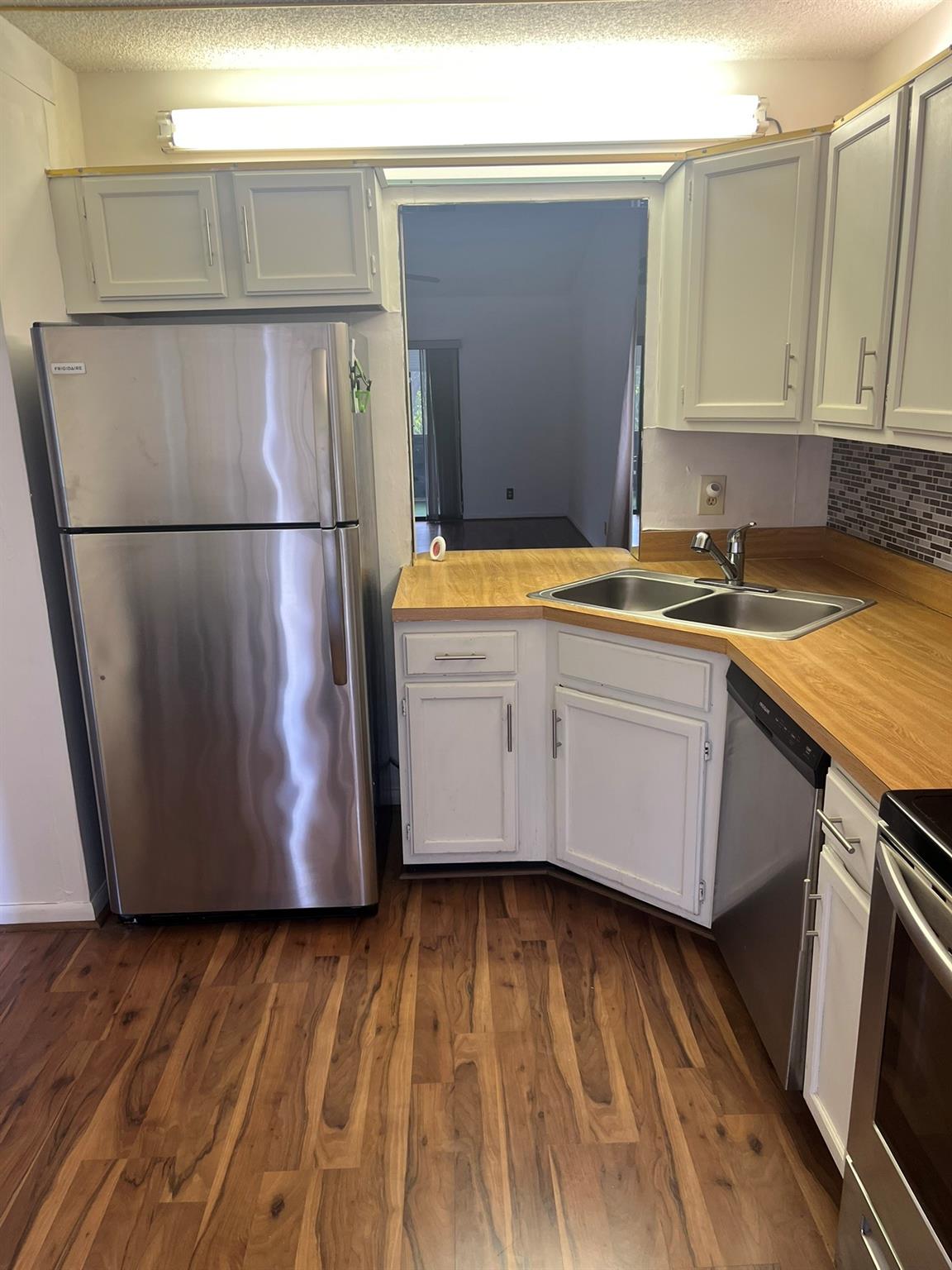 Fresh Corner Unit; has a screened in patio/porch. No stairs to climb in this 1 story home with a front and back yard. Move-in ready. Upgraded wood flooring. The Kitchen has newer Stainless Steel appliances. Bathrooms with new toilets, new sinks and newer cabinets. The Arbours Association is well funded and says 55 yrs. or older; Clubhouse, Pool area and tennis paddle ball. Cable TV, Building Exterior, Lawn/Landscape Care, Insurance, Roof Repairs, Sewer & Water.