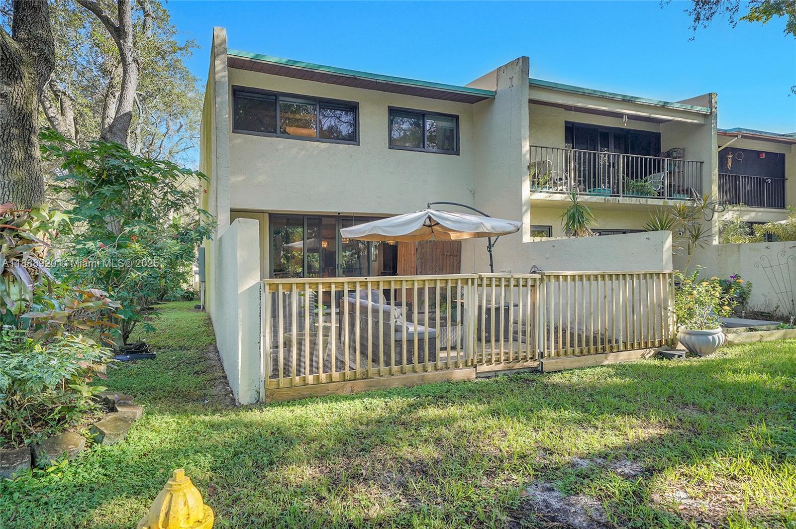 Welcome to this stunning townhouse located in the Jacaranda Country Club. This updated home offers the perfect blend of comfort and style! Featuring a modern kitchen with stainless steel appliances, granite countertops, and wood cabinetry, designed for both beauty and function. Enjoy updated bathrooms, high ceilings, and living areas with tile flooring downstairs and wood upstairs. The impact windows and doors and security camera provides safety and security. Step outside to your covered, fenced patio with tranquil lake and golf course views—perfect for relaxing or entertaining. Ideally located close to shopping, dining, and major highways, this home combines convenience with tranquil living. Don’t miss the chance to own this move-in ready gem—schedule your showing today before it’s gone