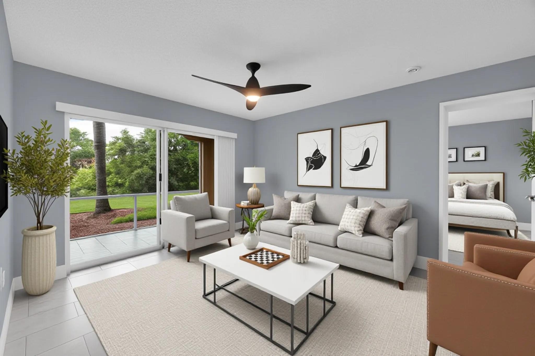 Discover this charming 2-bedroom, 2-bath ground-floor condo with beautiful lake views from your private balcony. Freshly painted and filled with natural light, the open layout provides a warm and inviting space, perfect for both relaxing and entertaining. Recent upgrades include a new air conditioning system and hot water heater (April 2025), plus a brand-new refrigerator, stove, microwave, dishwasher, and updated light fixtures—making this home truly move-in ready. The community features resort-style amenities including a heated pool, Jacuzzi, gym, racquetball court, and tennis. Located just 10 minutes from the pristine beaches of Jensen Beach and close to shopping, dining, and lively downtown activities, this condo offers the perfect balance of comfort, convenience, and coastal living.