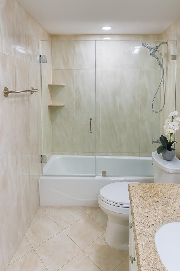 Incredible views of the ocean and intracostal. Ultra large balcony to enjoy the beautiful scenery. Gorgeous tile and granite in this tastefully renovated condo. 2 very large bedrooms with walk in closets. Tons of storage and large storage locker included. Stainless steel kitchen appliances left for the buyer's enjoyment. Full size washer and dryer in unit. Building amenities to include pool - hot tub - saunas - pool bathrooms with showers - gym - pool table and party room. Full time building maintenance person. Split bedroom floor plan with arched opening between living room and dining room. Vacant and easy to show. ELSS assessment for limited sprinkler system due April 1 $7457.02