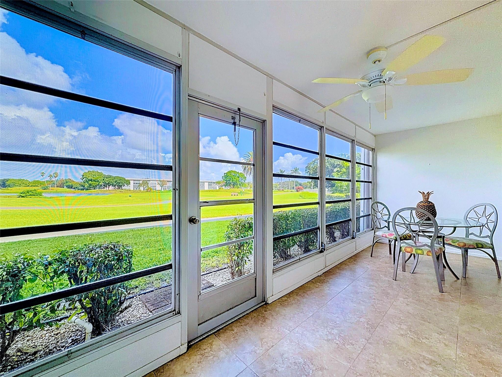 Welcome to Wynmoor, a vibrant 55+ community in Coconut Creek! This bright 2BR/2BA first-floor condo offers 1,156 sqft under air with tile flooring throughout, granite kitchen countertops, stainless steel appliances, and full hurricane shutters. The open layout is filled with natural light and includes a patio with peaceful views of the golf course, lake, and swaying palm trees. Furniture is negotiable for added convenience. Wynmoor residents enjoy resort-style amenities including 10 tennis courts, 10 pickleball courts, 20 pools (lap & walking), an 18-hole golf course, a 962-seat theater, fitness classes, and 70+ social clubs. Conveniently located near Florida’s Tpke, this guard-gated community is designed for an active, social lifestyle where every day feels like a well-deserved getaway!