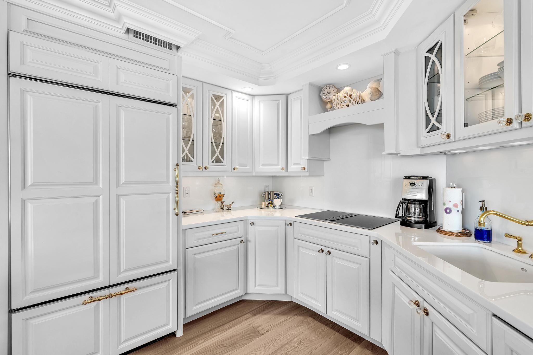 A JEWEL BOX-Walk in and experience ultimate elegance done in Palm Beach Coastal with Gold Appointments-This designer unit was the builder's model featured in Florida Design Magazine-Spacious corner unit has expansive views of the Lake and The Boca Resort accented by beautiful gardens and Pool views ! Large Living room has 2 seating areas-Magnificent Open Gourmet Kitchen done in exquisite white includes a sub-zero refrigerator-Dining Room facing the Water captures tranquility ! Over-sized bedrooms , and a separate Laundry room with a sink- This is a one-of-a-kind unit on Lake Boca ! You have never seen one like before ! Unit is furnished, Turn Key ! Service Animals allowed.