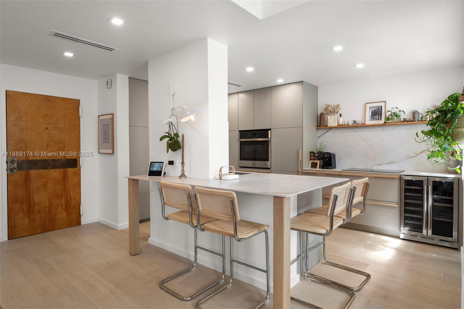 LUXURY LIVING, MOVE IN READY, BEACH FRONT CONDO All new kitchen with high-end appliances and stone countertops and backsplash throughout. Plenty of extra storage in cabinets for cleaning appliances, bedding and towels. New Bosch washer and dryer, brand new water heater. Decorative partition wall separates open living to bedroom for maximum openness and light flow. Walk-in closet and a beautiful, spa-like bathroom. Impact windows in the unit. HOA fee includes cable tv and Internet. Building amenities include a heated pool, BBQ grill and dining area, bike storage and large laundry room. Beach access is directly across the street from the building entry. 10% reserves and 40 year Inspection Certificate pass.