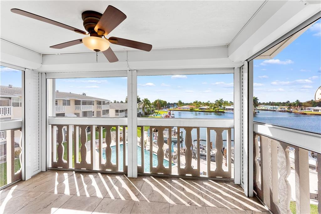 Your boater's paradise awaits in this exceptional marina-front condo! Enjoy true low-maintenance living so you can spend more time on the water. Enjoy peace of mind with a 2024 tankless water heater and full storm protection with impact windows, doors, and roll-down shutters. Start your mornings sipping coffee or unwind with an evening cocktail on your private screened balcony, offering stunning views over the pool and bustling marina. The updated kitchen shines with granite countertops, SS appliances, and convenient appliance nooks. On navigable waterway! Dock purchase subject to waiting list