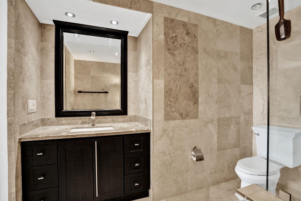 Experience luxury and security in this Eastern Shores waterfront condo, located behind a guarded gate. The 5th floor unit boasts stunning water views from both its large south-facing balcony and north side. Partial impact windows and hurricane shutters through out. High-end travertine finishes throughout, complemented by a fully remodeled kitchen and updated plumbing/electrical system. This 2 bedroom, 2 bathroom layout includes a walk-in master closet for added convenience. With the building surpassing its 40-year certification and being ahead on the 50-year certification, peace of mind is assured. Additionally, seize the opportunity to rent a dock space! This condo offers not just a home but a lifestyle! Deeded dock is only $250/M bring your boat!