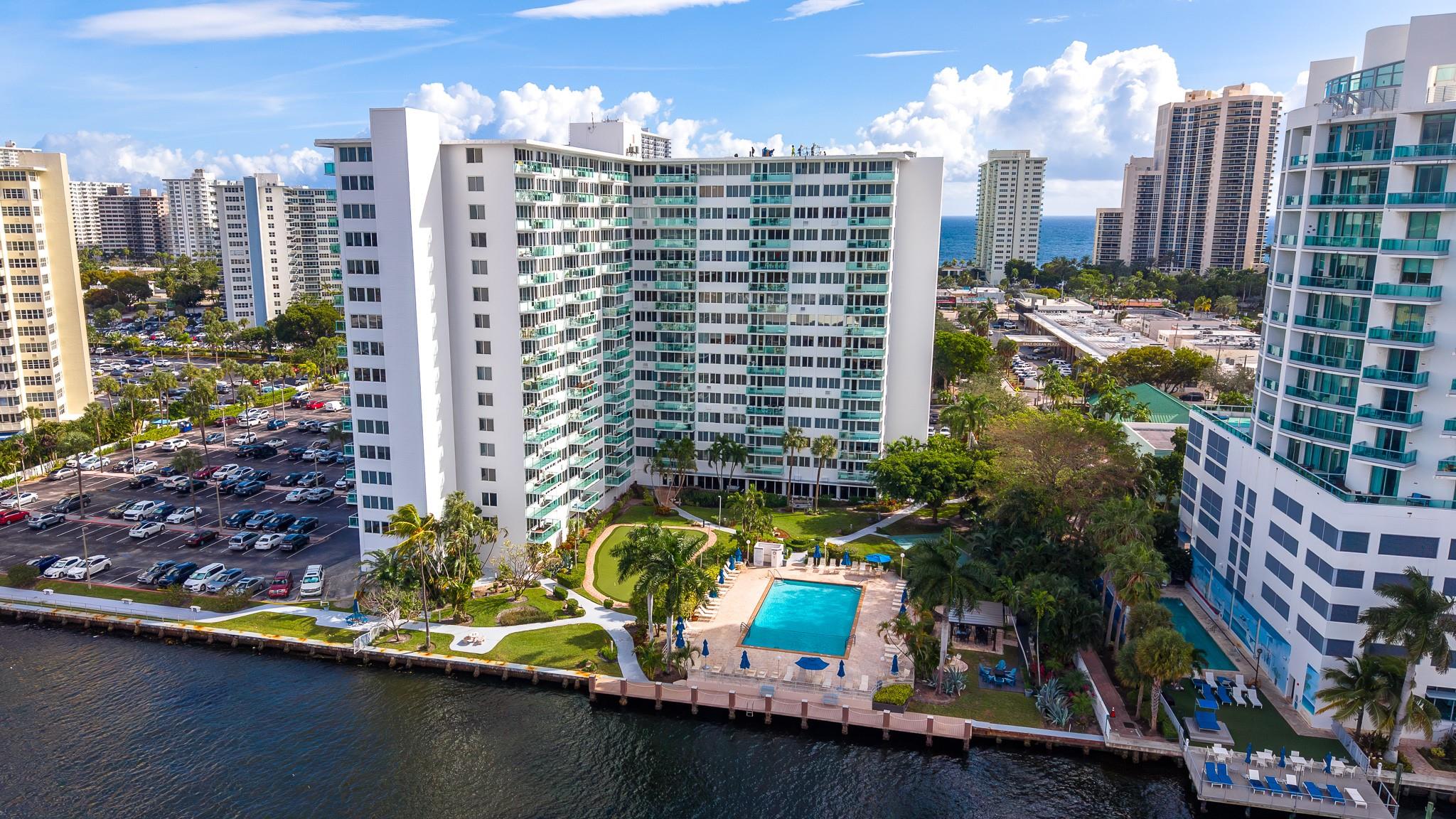 Fabulous Mid-Century Classic! Two bedroom and two bathroom apartment at Coral Ridge Towers Original with incredible Intracoastal and ocean views! Ready to move in and make it your own. New hurricane impact windows and doors installed. Located across the street from the beach and close to restaurants, post office, bank, grocery shopping and the water taxi. Watch the boats and yachts pass by in the large 30 x 60 heated and cooled pool directly on the Intracoastal. Putting green, outdoor grills, and a library and just some of the amenities. Financially Stable Building with Fully Funded Reserves. Low monthly maintenance includes Cable TV, 24 hour security and on site management. 55 plus, no pets, no rentals.