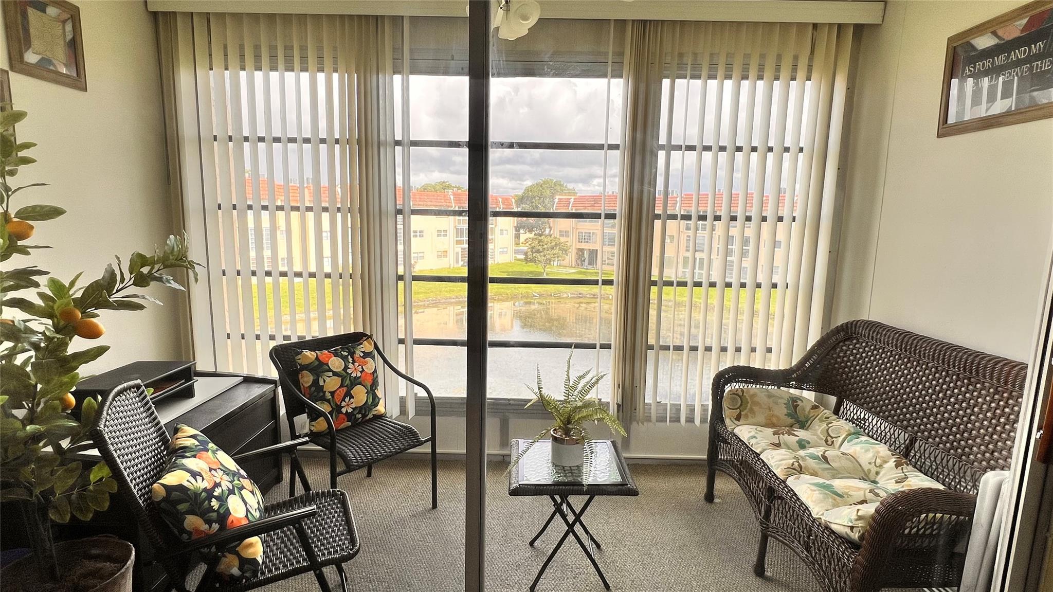 Charming 1/1 furnished or unfurnished condo in the heart of Sunrise with a stunning lake view. Features a glass-enclosed balcony, tile throughout foyer and kitchen, carpet in living and bedroom, modern kitchen and bathroom, and a tranquil bedroom. Exterior storage room and laundry on premises. This vibrant 55+ community offers plenty of amenities, including a surrounding golf course, tennis courts, indoor heated pool, outdoor pool with jacuzzi, racquetball, BBQ areas, cabanas, and a sauna. Maintenance fee covers cable, internet, water, pest control, and appliance contract. Convenient bus service, nearby shopping, restaurants, and major highways add to the appeal. Make this your home today! Foreign seller, buyer must sign FIRPTA affidavit.