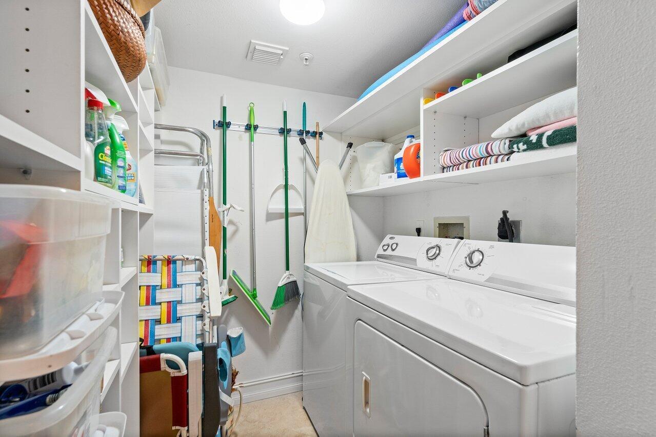 Welcome to the intracoastal gated community Highland Beach Club! Immaculate 2nd floor 2 BR/2 BA condo features a split BR floor plan, covered terrace, newer A/C and marble floors on the diagonal in main living area. NO carpet! Great sized open kitchen with newer refrigerator and large breakfast bar. Laundry room/pantry with full size washer and dryer is perfect for extra storage. Master bedroom has 2 walk in closets, oversized bathtub and linen closet. Huge 2nd BR also has large walk in closet and shares guest bathroom. All closets are fitted for maximum use of space.This unit is spacious and bright and extremely well maintained. Water, cable and internet included in condo fee. No waiting period to rent and pet friendly! Private beach, all age community.Highland Beach Club is a true