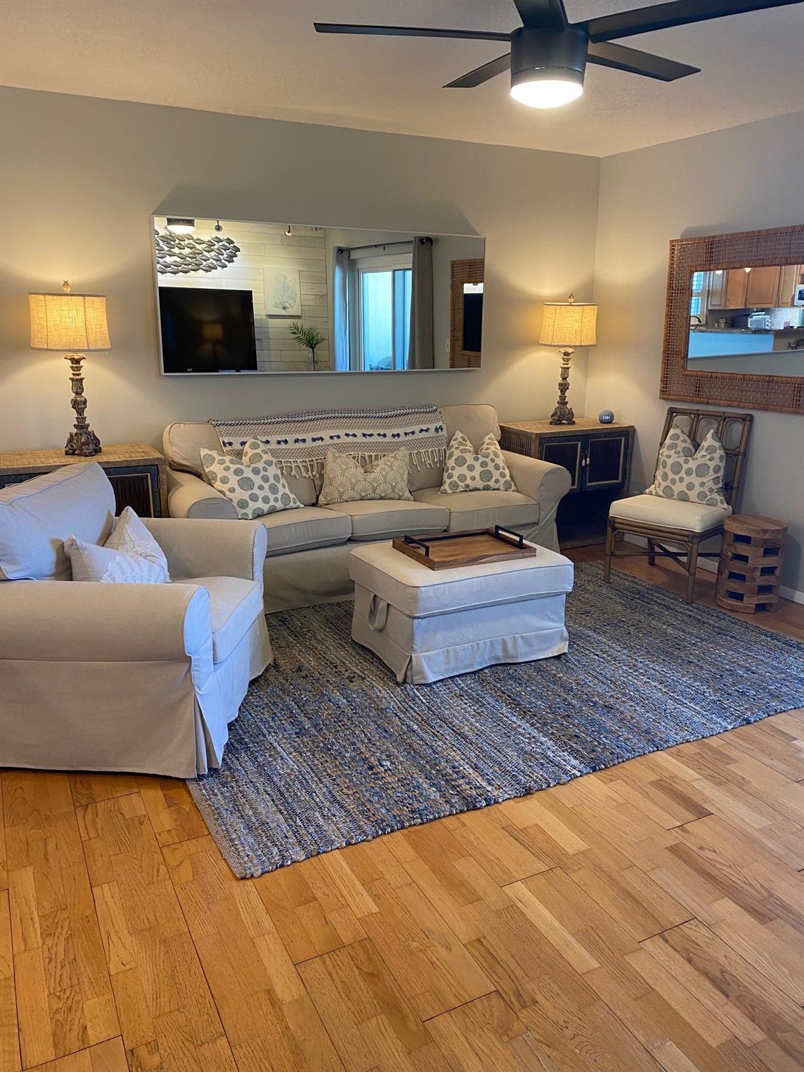 BOAT DOCK available for rent. TOP FLOOR 2 bed 2 bath corner unit with lots of light & open balcony with park views. 75 sq ft larger than other 2 bed units in the building. Available fully furnished & turn key. Waterfront community on canal only steps from Intracoastal & walking distance to beach. Secured elevator access, laundry room on each floor. PET FRIENDLY community (3 pets max, 1 dog < 35 lbs and 2 cats). Monthly maintenance includes INTERNET & all other utilities except FPL. Open kitchen with granite counters, oak cabinets & real hard wood flooring. Master bed includes walk-in closet & walk in shower, 2nd bath includes shower/tub combo. Impact windows & doors. Building restoration complete with new concrete, paint, & new roof in 2025. Unit with newer AC (2021) & water heater (2023).