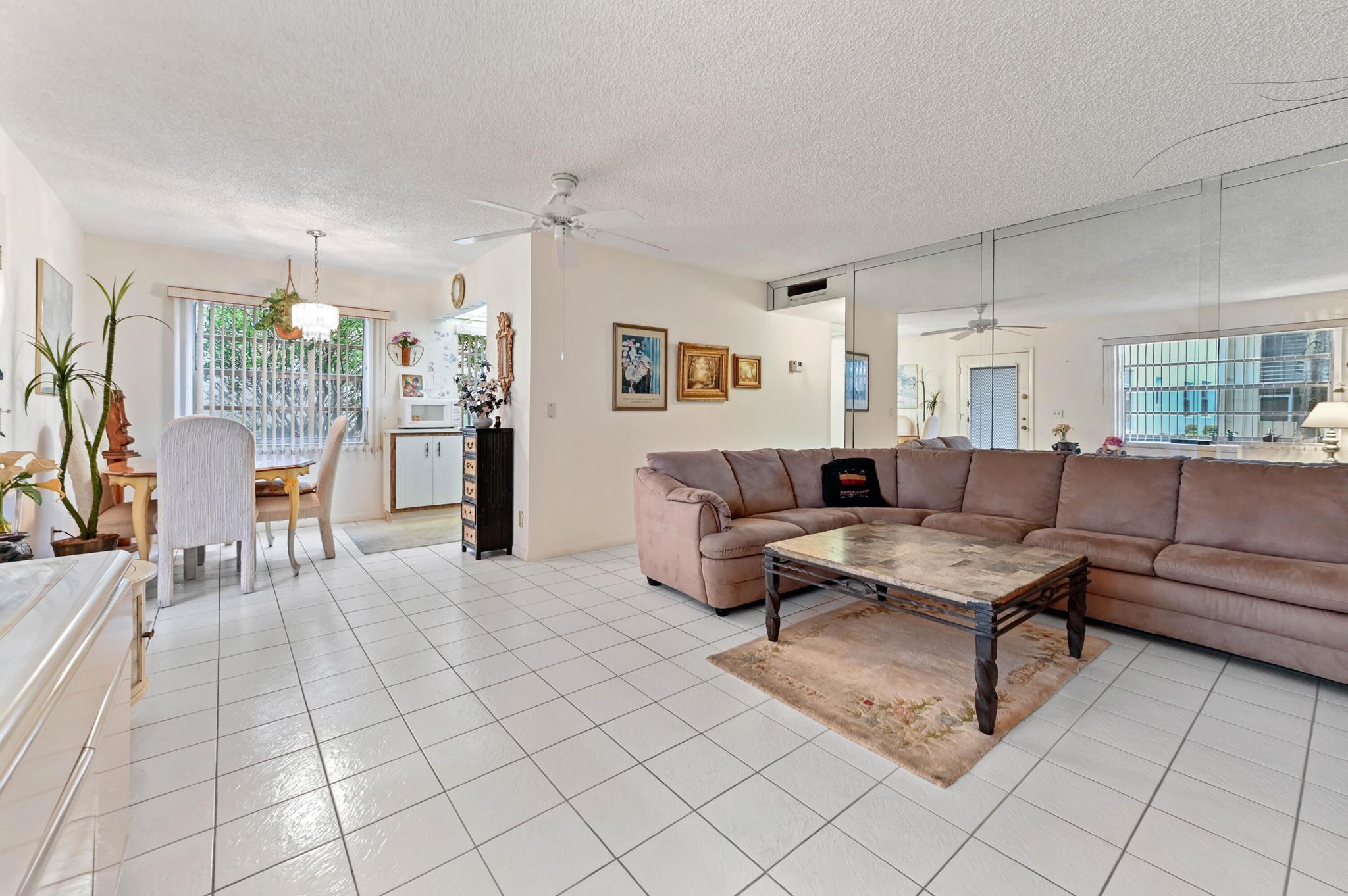Welcome inside a vibrant first-floor unit located in the wonderful Kings Point 55+ community in Delray Beach, conveniently positioned in Normandy M. Marrying the harmony of residential comfort and community, this handsome property offers a unique and enticing opportunity.Upon entering the well-kept complex, you are met with meticulously maintained landscapes and paved walkways leading to the unit. As you walk through the front door of the lower-level unit, the spacious living room extends a warm greeting, adorned with sleek, modern flooring that effortlessly complements the neutral-toned paint. The large windows facilitate the abundant infusion of natural daylight, creating a lively and bright atmosphere.
