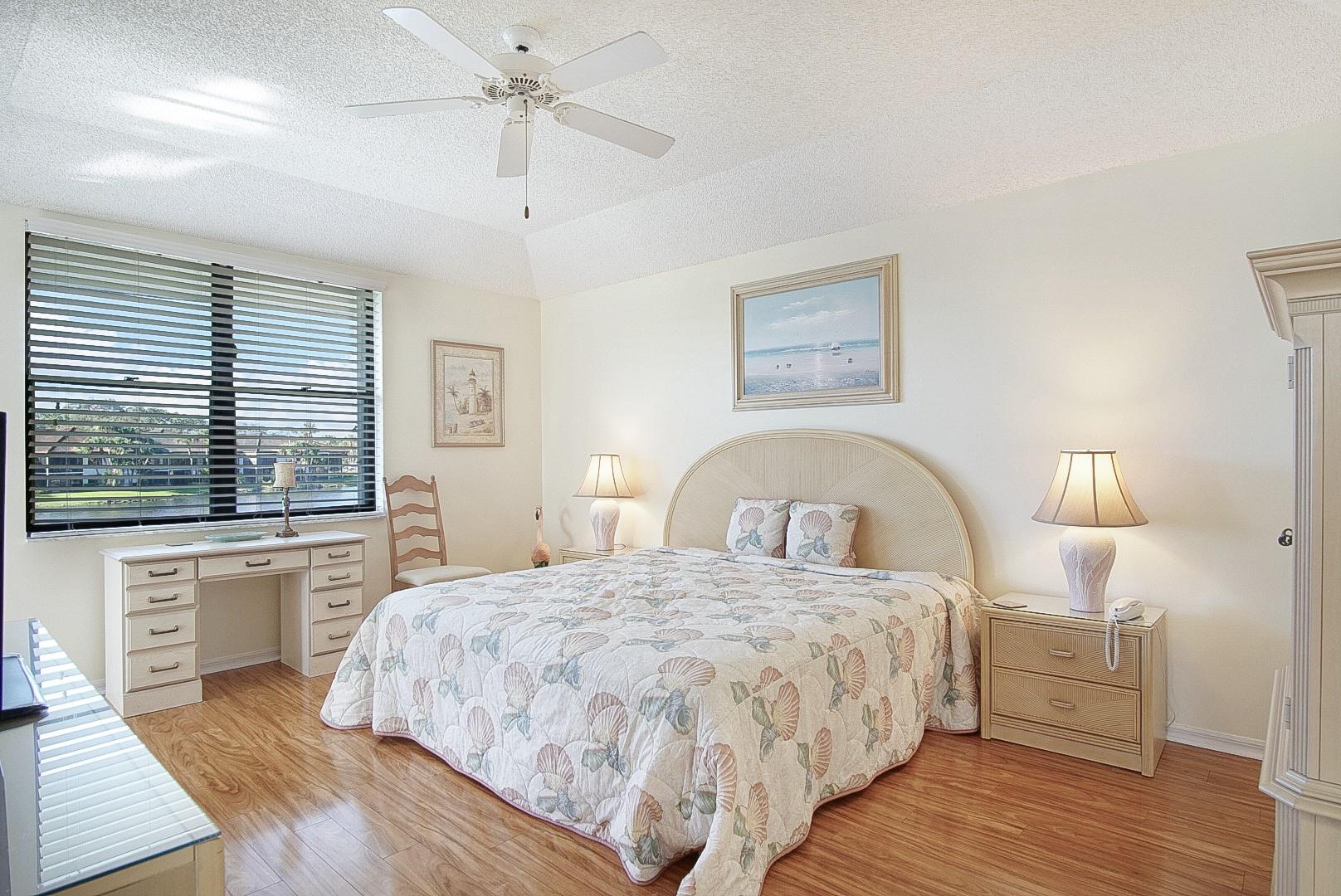 Brand-new roofs coming soon - no assessment! Enjoy stunning lake views from this bright and airy 3BR/2BA corner condo in beautiful Hanson’s Landing. This spacious second-floor unit features vaulted ceilings, a tray-ceiling primary suite, and wood flooring. The eat-in kitchen offers a large pantry, and extra windows fill the home with natural light. Relax on the enclosed porch overlooking the peaceful lake. Offered furnished and move-in ready! Large storage outside and 1 carport space. Community amenities include a heated pool, BBQ, tennis and basketball courts. Check dock availability for purchase or lease. Perfect for pet lovers - bring your small furry friend (up to 25 lbs). Adjacent to Miles Grant Country Club with optional golf and social memberships.