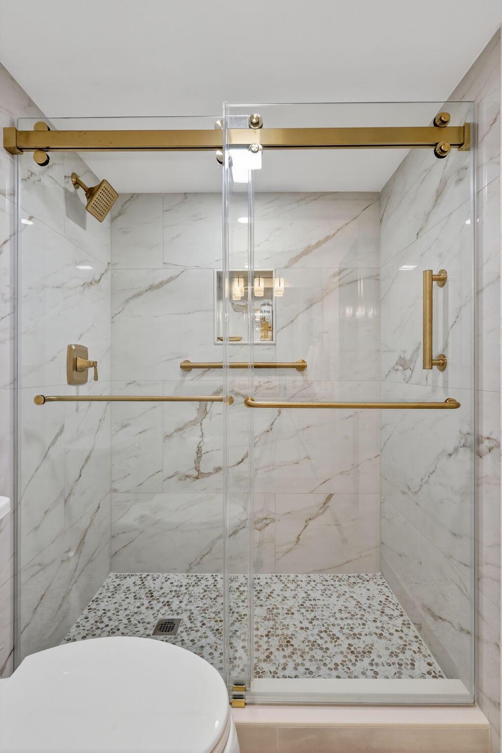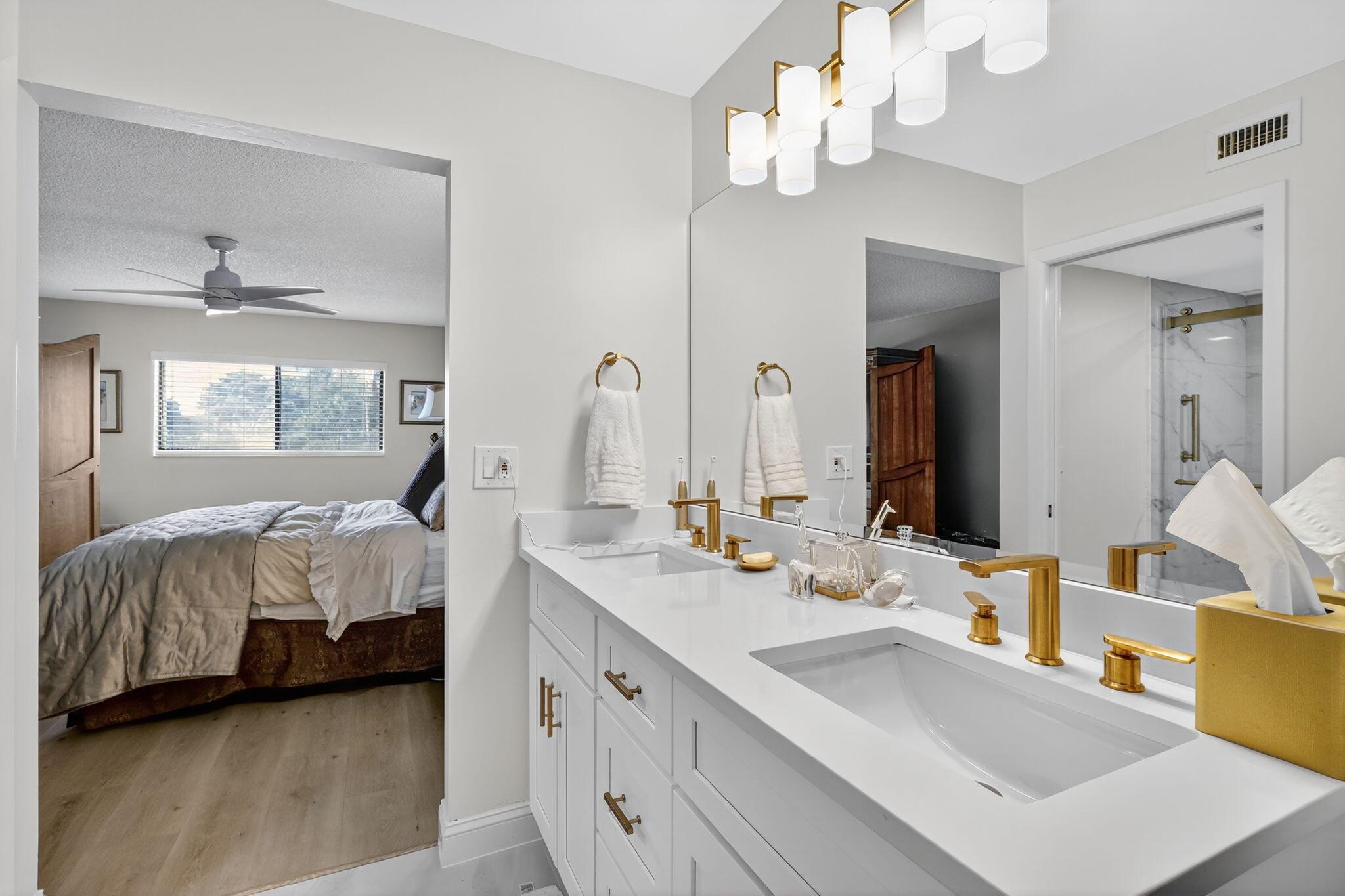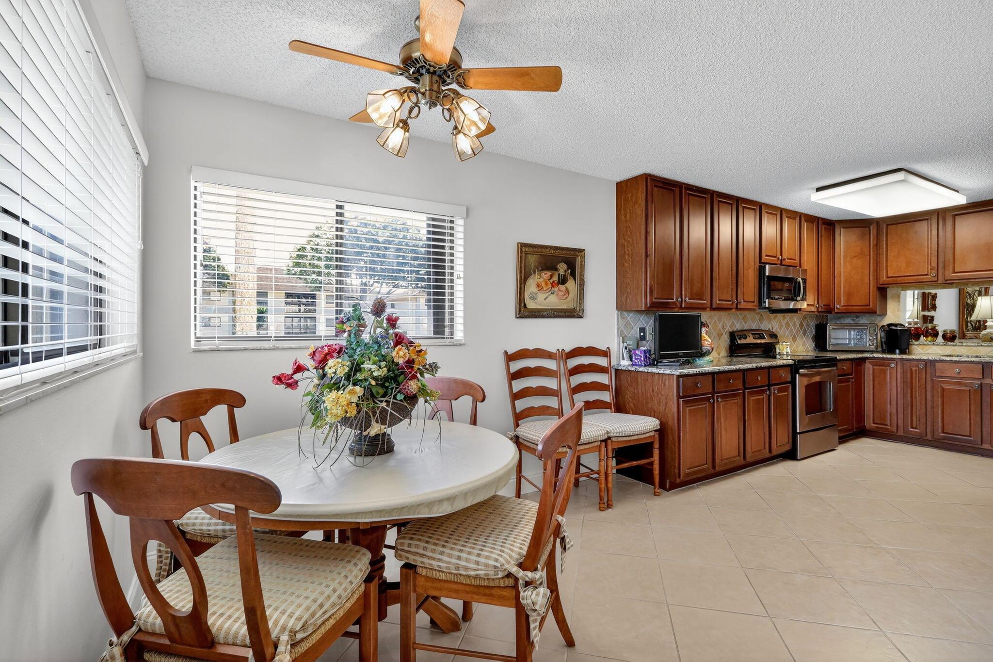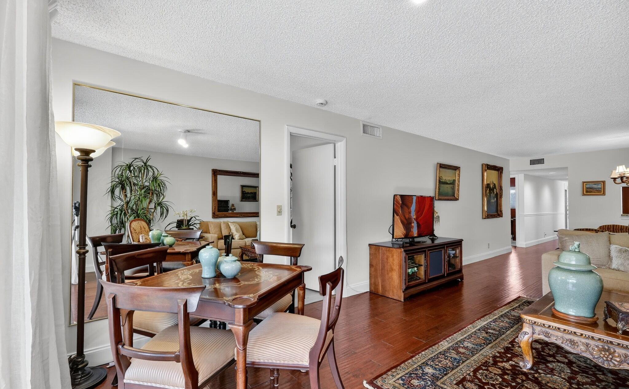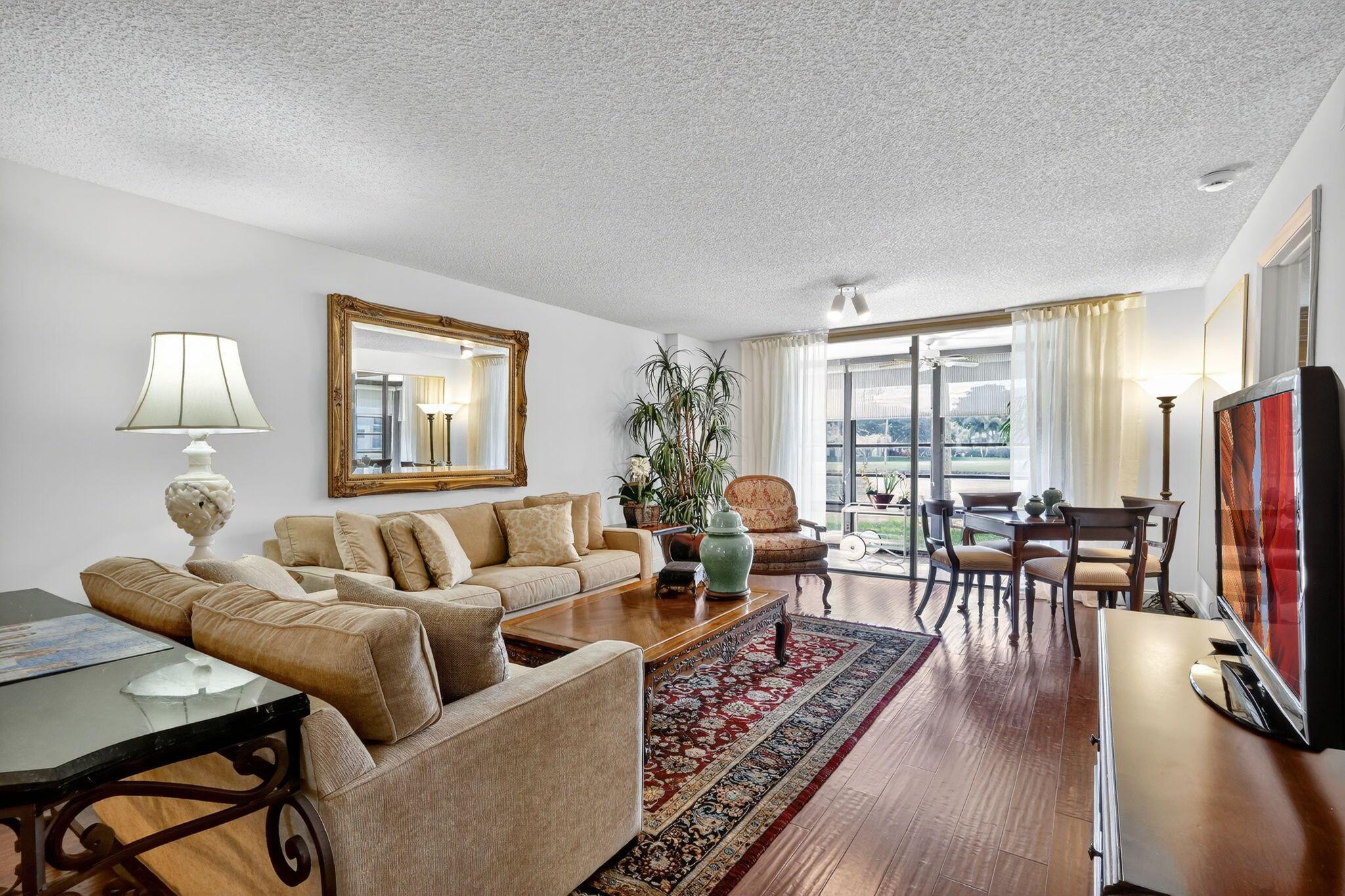 Enjoy this beautifully Watersedge updated 1st floor corner unit with a wrap-around water view in the vibrant community of Lakes of Delray. The location is ideal. 2 bedrooms, 2 baths. Luxurious wood flooring throughout the living area. A spacious kitchen with a cozy and convenient breakfast area and new blinds. The master bedroom has brand new wood-look floors. New ceiling fan and blinds also in the master. The primary bath was just completely renovated with dual sinks, new porcelain tile floors, quartz counters and contemporary cabinetry. Newly painted interior throughout. The enclosed patio overlooks the tranquil lake and grassy expanse. The Lakes of Delray is an active community with a wide array of activities, clubs and entertainment.