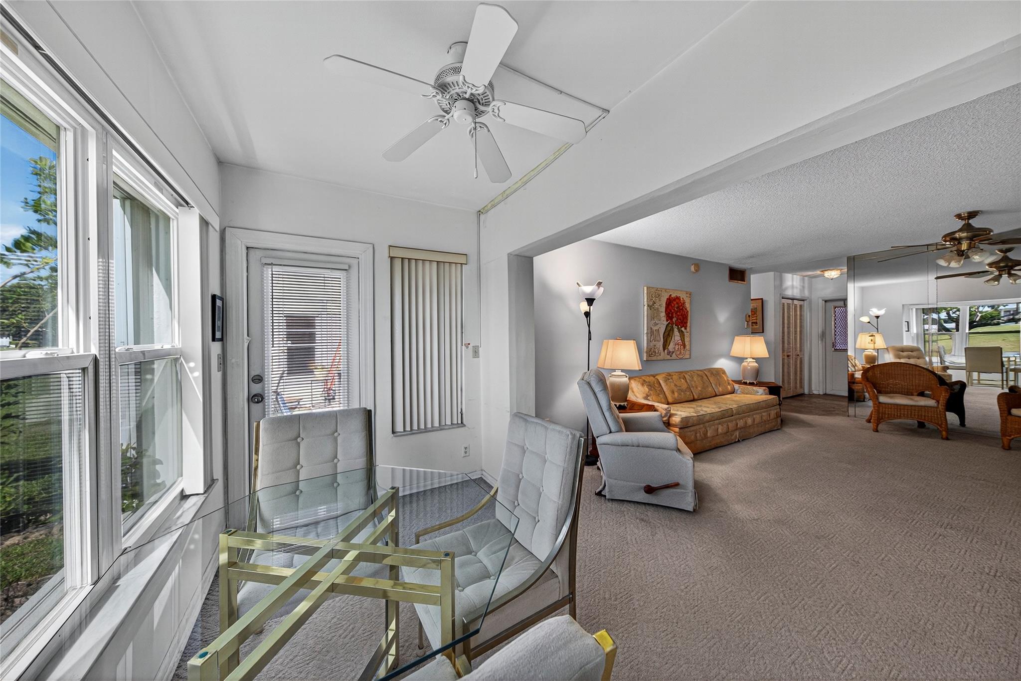 Newly Priced FIRST floor FURNISHED condo in 55+ community directly on the golf course. Enjoy South Florida living in this 1 bedroom, 1 bath, first floor furnished condo with lovely views of the private golf course. This unit offers an amazing opportunity to customize an update to your taste. The location can’t be beat-just steps from the mail area, laundry facilities, & your assigned parking space for maximum convenience. Residents enjoy free golf, 2 heated pools, 2 clubhouses & a variety of social activities year-round. Perfectly situated near shopping, dining, & a short drive to the beach, this condo combines comfort & ultimate in Florida lifestyle. Some impact windows/door A/C 2018 W/H 2019. No Land Lease or pending assessments. Bring your imagination and make this home your own!