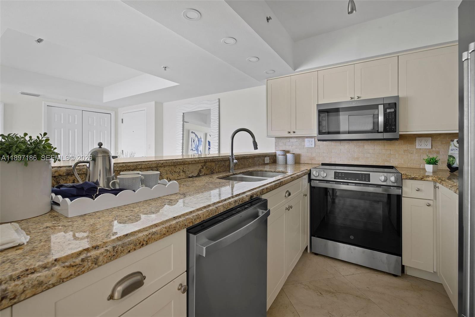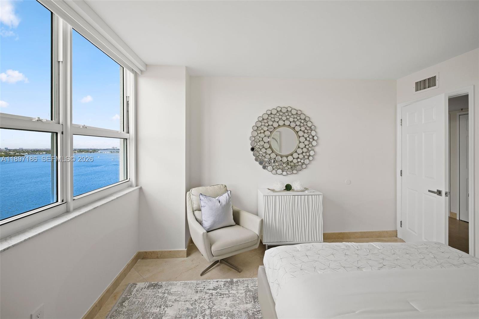 Spacious 3-bedroom residence at The Floridian featuring spectacular direct bay views and elegant marble flooring throughout. This upgraded unit offers a modern kitchen, renovated bathrooms, generous closet space, and a private balcony to enjoy the views. Additional highlights include a full-size washer and dryer and two covered parking spaces. The Floridian is a full-service building offering resort-style amenities including two bay front pools, a state-of-the-art fitness center, hot tub, tennis court, 24-hour security, concierge, and valet service.