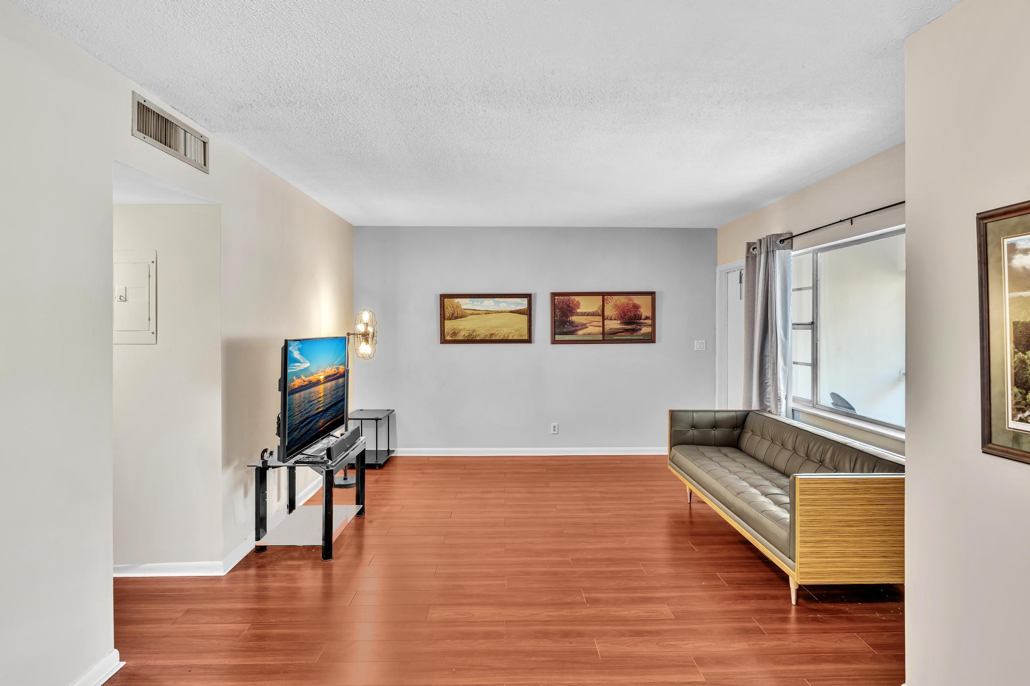 Well maintained 2 bedroom 1 1/2 bath condo in excellent location in East Boca Raton right off Federal Highway across from the prestigious Royal Palm community. Move-in ready condo has a great floorpan, and wood floors add to the ambiance. Screened balcony and privacy in this secluded condo. Close to everything including beaches, Mizner Park, a new community park, restaurants and retail.