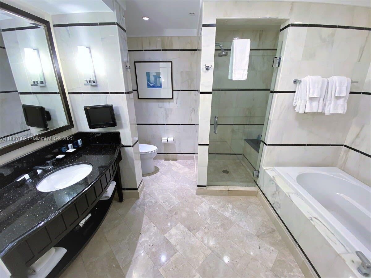 Experience resort-style living in this extra-large Jr. Suite at Fontainebleau III – Sorrento Tower. This elegant residence features two queen beds, a pull-out sofa, a marble bathroom, and a convenient kitchenette, all in a fully furnished, turnkey setup. Step out onto your private balcony and take in the ocean and pool views. Enjoy all the amenities of the iconic Fontainebleau Resort, including fine dining, Lapis Spa, LIV nightclub, beach and pool service, and more. Maintenance fees include A/C, electricity, valet, local calls, and daily breakfast in the owners’ lounge. Ideal for personal use or as an income-producing property through the hotel rental program.