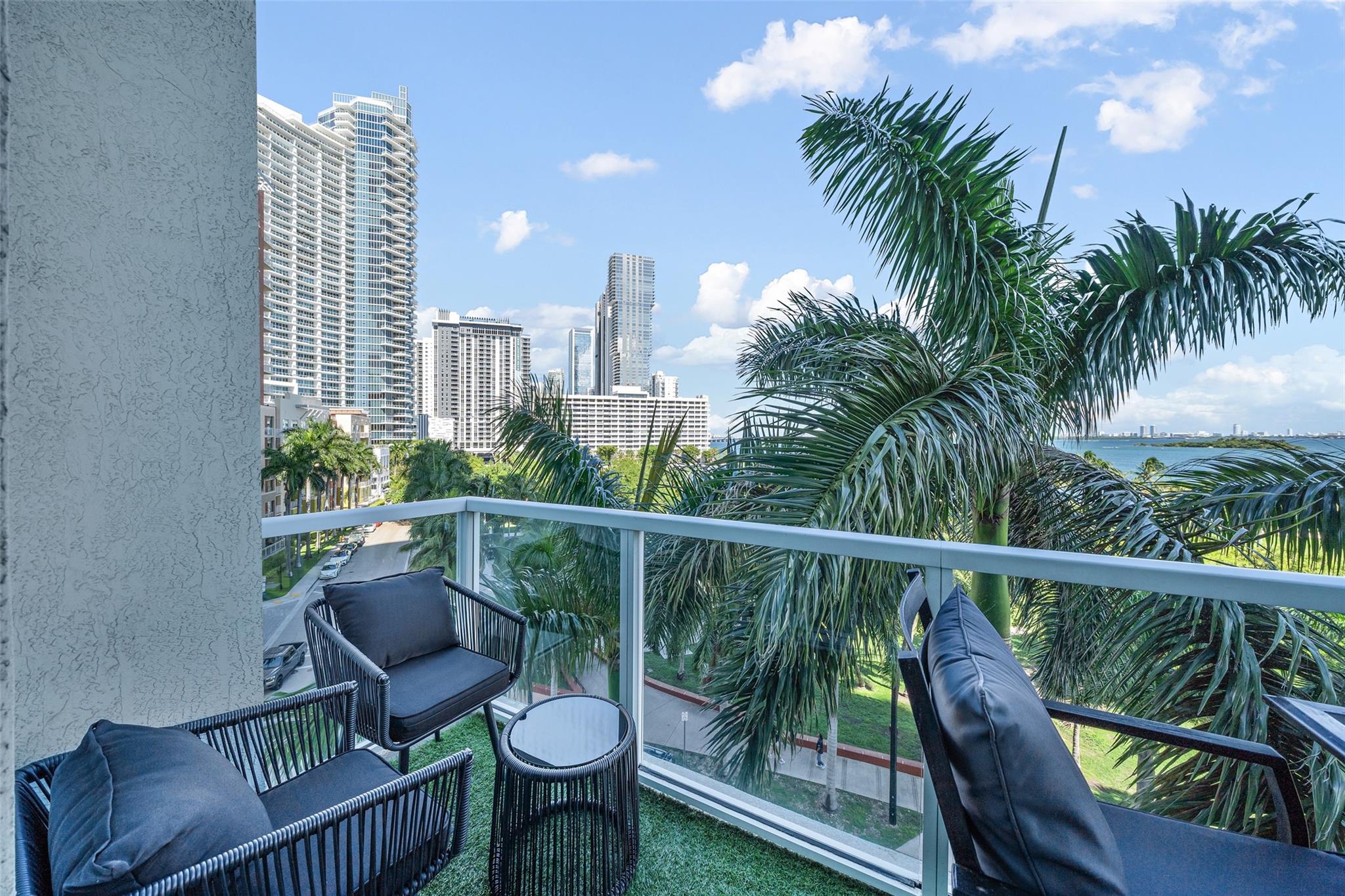 LOCATION, LOCATION, LOCATION!!! AS YOU STEP INTO THIS BEAUTIFUL EDGEWATER CONDO, THE BLUE WATERS OF THE BAY MEET YOUR EYES. MINUTES TO WYNWOOD, MID-TOWN, FINANCIAL CENTERS AND THE PERFORMING ARTS CENTER. SITUATED DIRECTLY ACROSS FROM MARGARET PACE PARK. CROSS THE VENETIAN FOR LUNCH AT THE STANDARD HOTEL! EASY ACCESS TO I95 VIA 395 OR 195. NEWER CONSTRUCTED CONDO WITH 14-FT CEILINGS, A NEWER A/C UNIT AND REFRIGERATOR. ENTIRE UNIT FRESHLY PAINTED. WALK ONTO THE LUXURY VINYL WOOD PLANK FLOORS AND PORCELAIN TILES IN THE BATHROOM. ALL NEW KITCHEN AND BATHROOM PLUMBING FIXTURES. CUSTOM VERTICAL CLOSET. THERE IS NOTHING TO DO HERE; BRING YOUR TOOTHBRUSH AND ENJOY THE GOOD LIFE! UNIT ON 7TH FLOOR, 4 STEPS DOWN TO PARKING LEVEL! FURNISHINGS AND STORAGE CAGE CAN BE INCLUDED AND ARE NEGOTIABLE.
