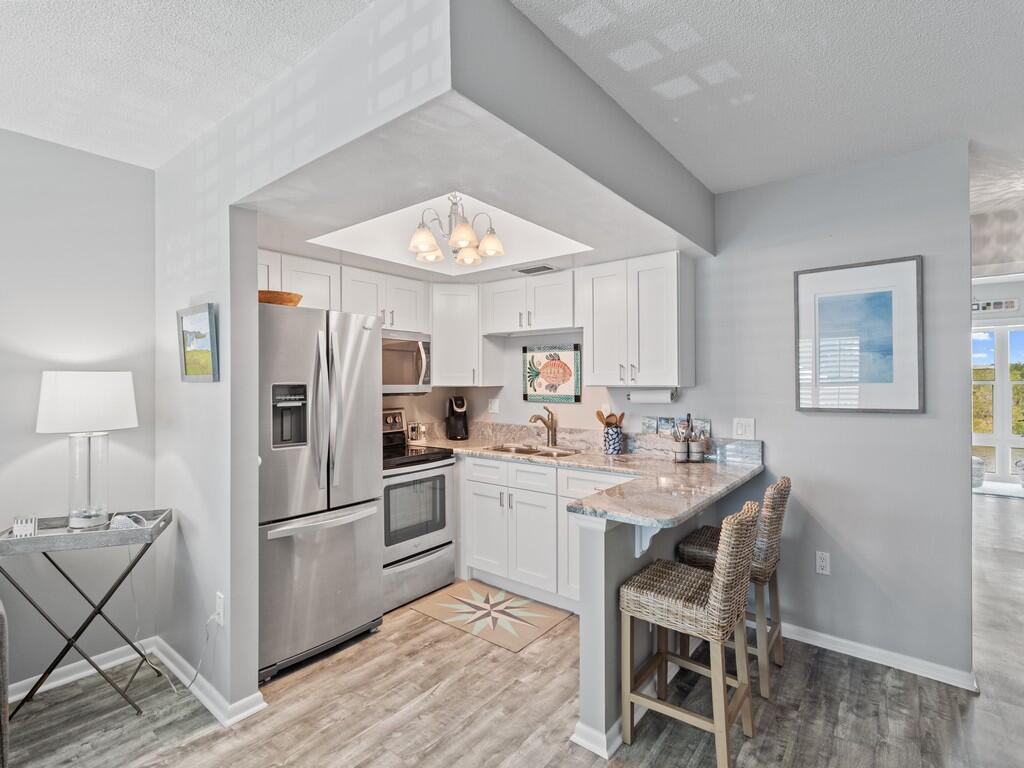 Million-dollar water and wildlife views without the million-dollar price, this is why you come to Vero Beach! Watch the dolphins and manatees from this porch view. This one bed 1.5 bath has been beautifully renovated with granite in the kitchen and bathroom, open kitchen concept and new flooring. Impact windows, Ac replaced in 2019 and serviced regularly. Community clubhouse, heated pool and activities to enjoy. Fish right off the shared dock and still be close to downtown dining and shops. 55+ community, no pets, rooms sizes are approximate and should be verified.