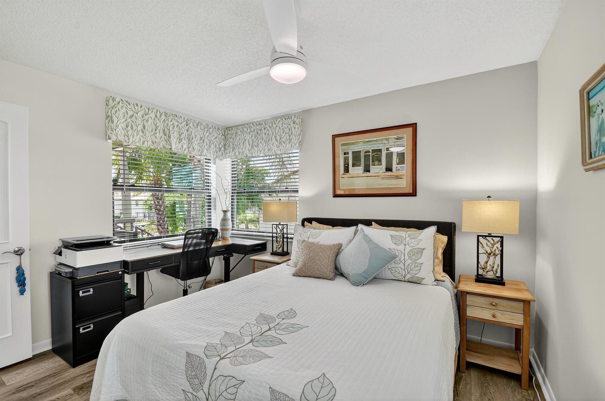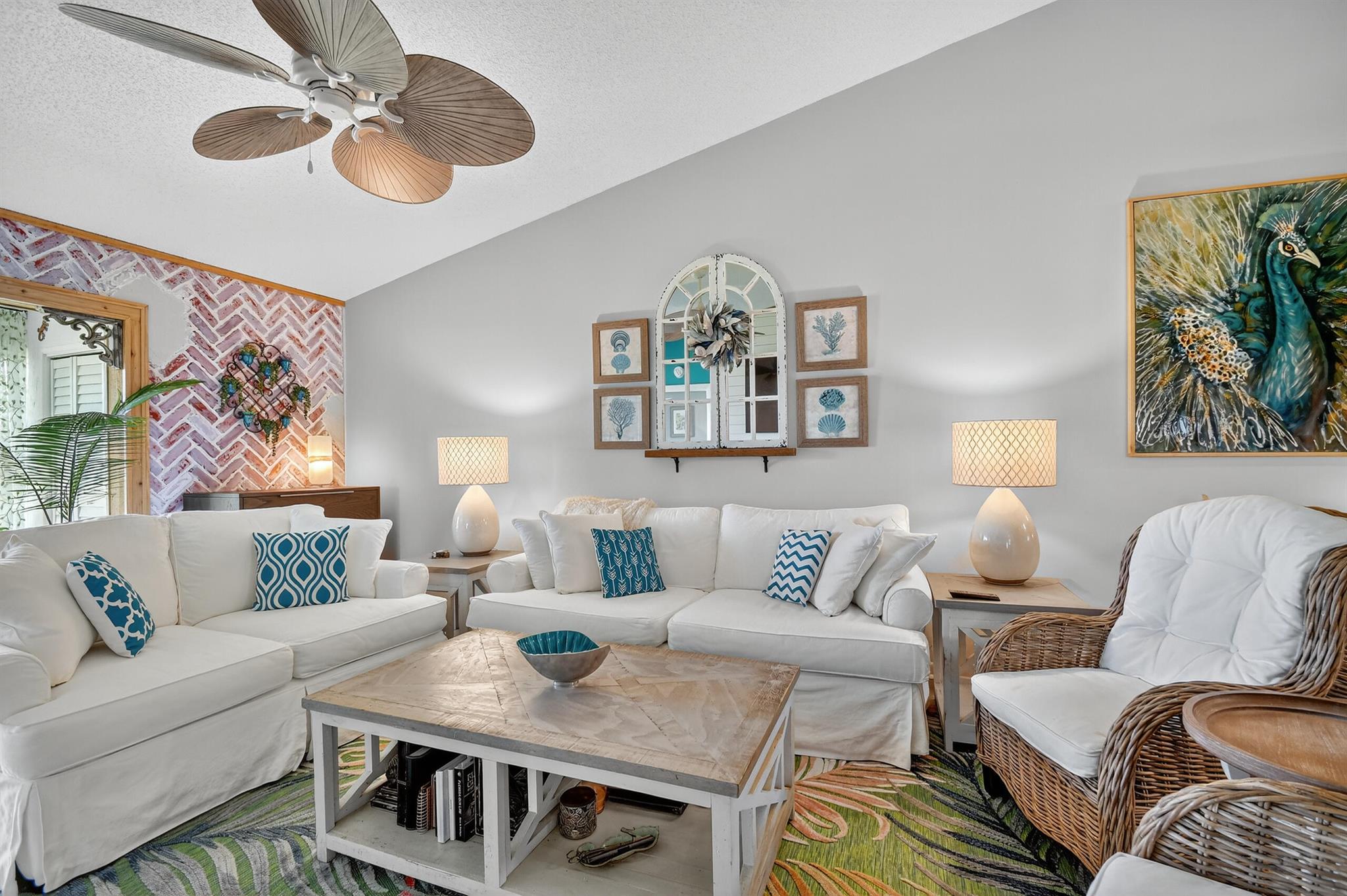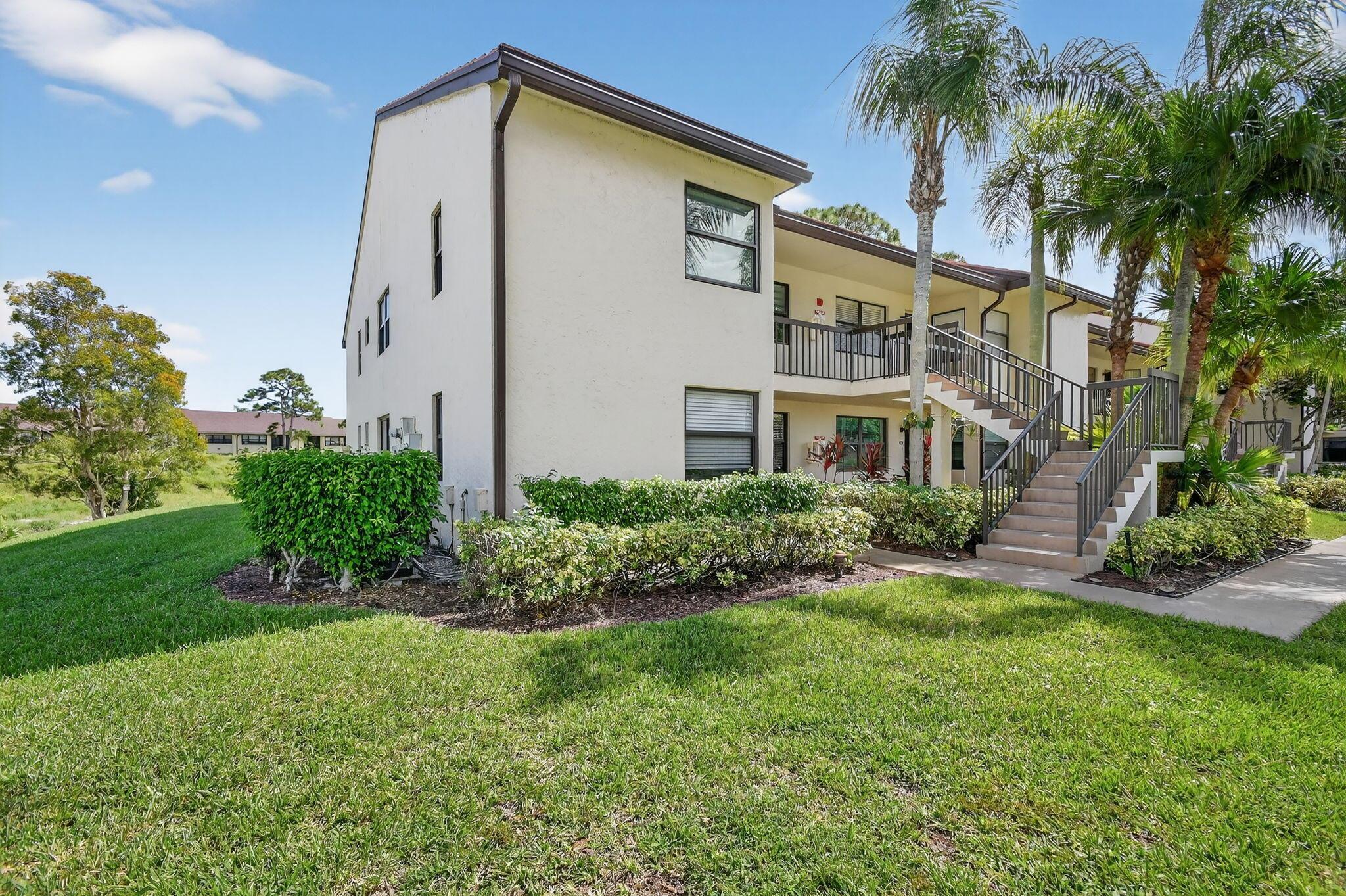 Impeccable, stunning aparment with views of water from all windows. This end unit apartment with vaulted ceilings has been beautifully updated starting with high rated impact windows. The a/c is a larger high efficiency unit, 2 yrs old. The water heater and washer and dryer are 4 years new. Bathrooms have been updated with frameless shower within 1 year. Kitchen with extensive cabinets including by bar stools. Built in firepalce with designer wood accents on wall - doors are upgraded with designer inserts. The patio area has a/c and is part of the home. The views are water and park areas. This is a 2 story building and does not have state required engineering requirements. Roof is 6 1/2 years new. This home is perfect. Close to Turnpike, shopping movie theatre.