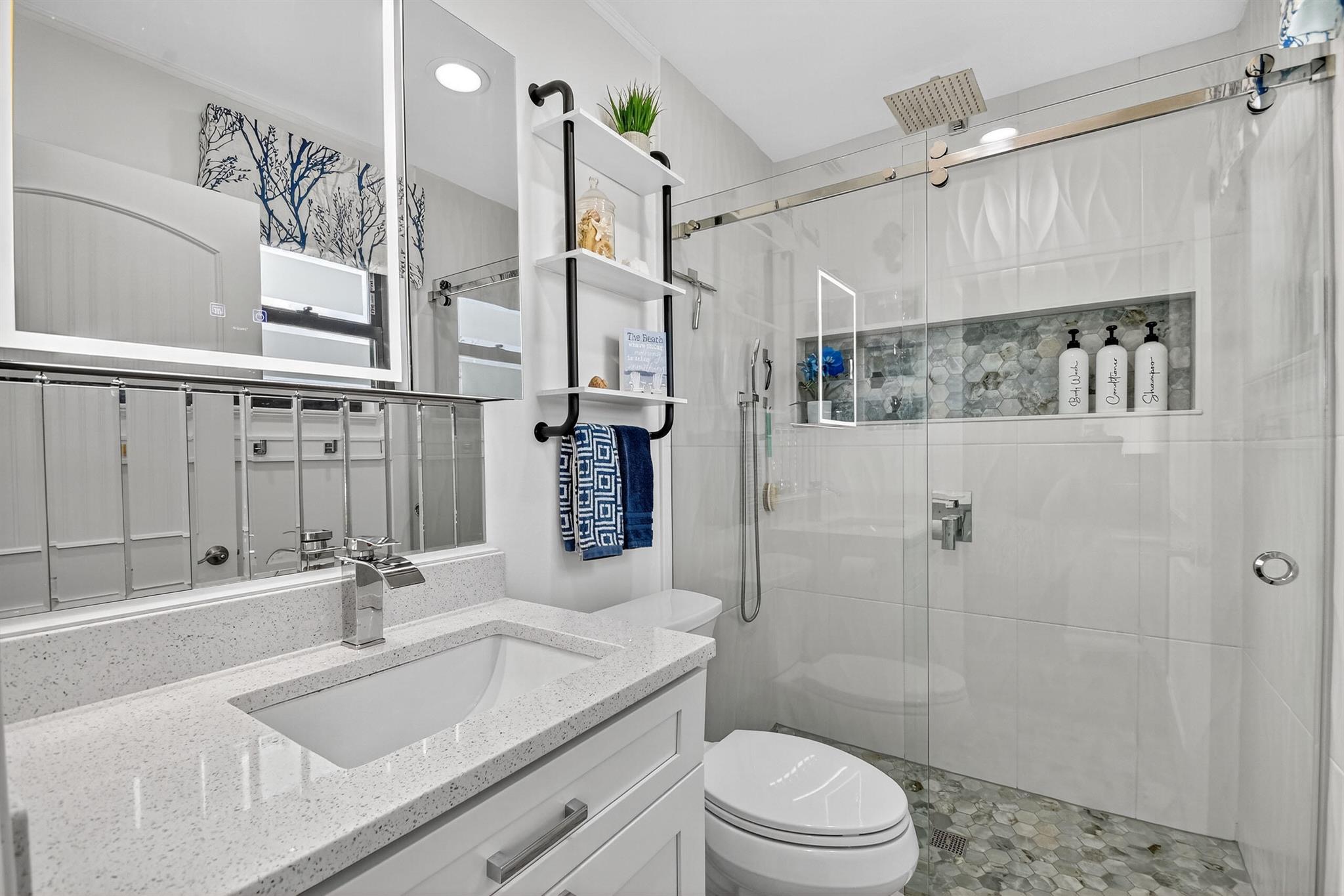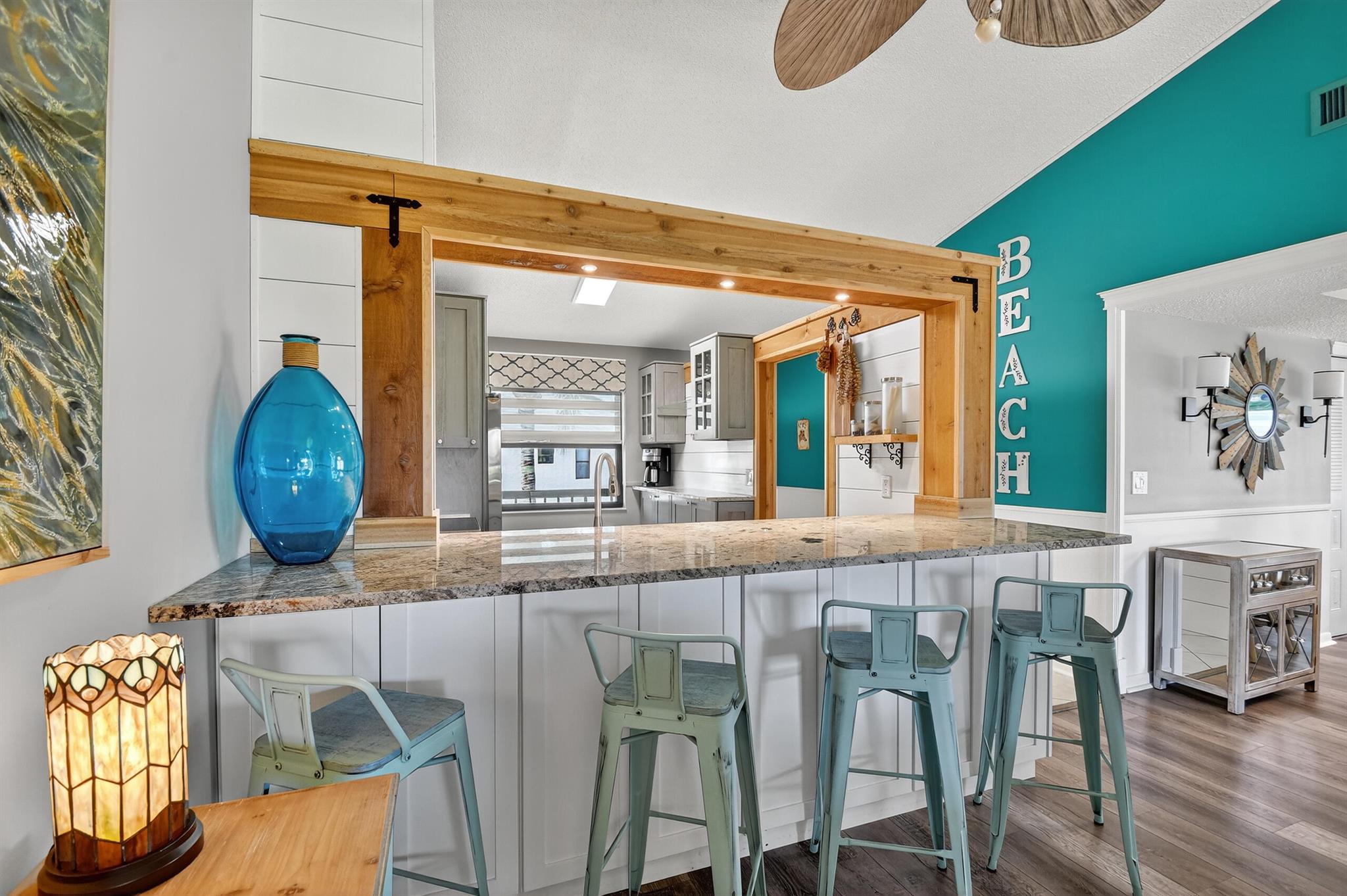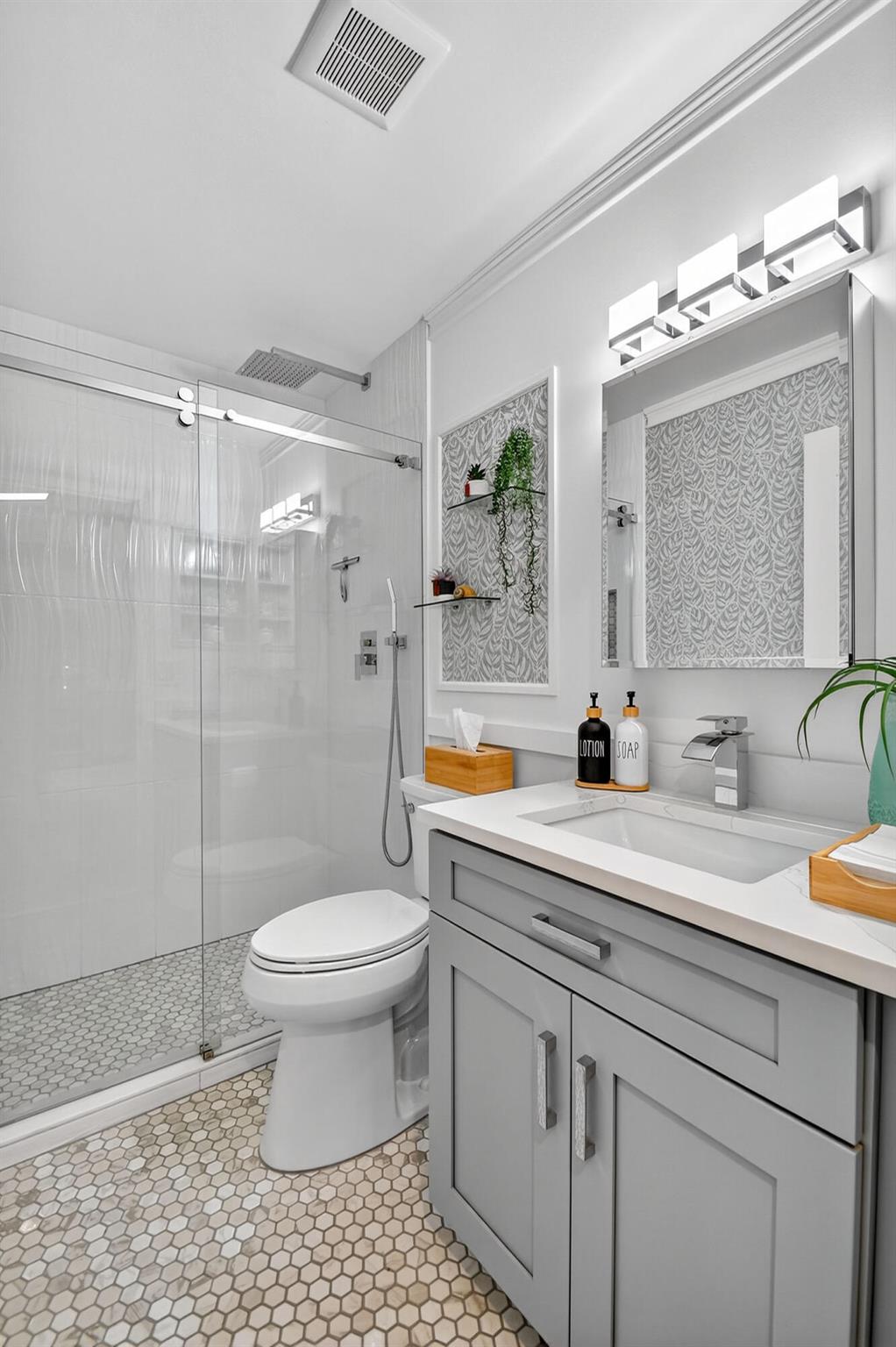 Impeccable, stunning aparment with views of water from all windows. This end unit apartment with vaulted ceilings has been beautifully updated starting with high rated impact windows. The a/c is a larger high efficiency unit, 2 yrs old. The water heater and washer and dryer are 4 years new. Bathrooms have been updated with frameless shower within 1 year. Kitchen with extensive cabinets including by bar stools. Built in firepalce with designer wood accents on wall - doors are upgraded with designer inserts. The patio area has a/c and is part of the home. The views are water and park areas. This is a 2 story building and does not have state required engineering requirements. Roof is 6 1/2 years new. This home is perfect. Close to Turnpike, shopping movie theatre.