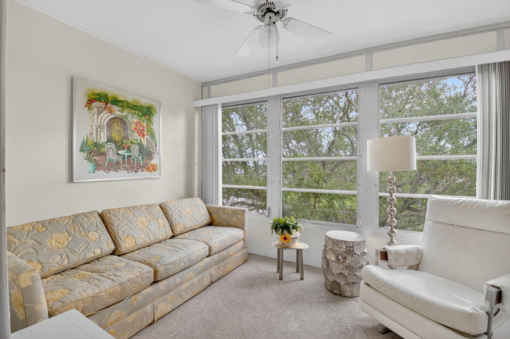 Move-in ready, bright 4th-floor condo in the desirable Grantham B building of Century Village East, conveniently close to the elevator, laundry facility, and locker storage. Features a Florida room with large windows offering a stunning lake view -- perfect as a sitting area, reading nook, or home office with treetop views. Kitchen has been thoughtfully updated for style and functionality. An assigned parking spot near the elevator is included. Enjoy the community pool right in front of the building and take advantage of all the resort-style amenities this vibrant 55+ community offers, including pools, tennis, pickleball, theater, and more! Call today for a private showing!