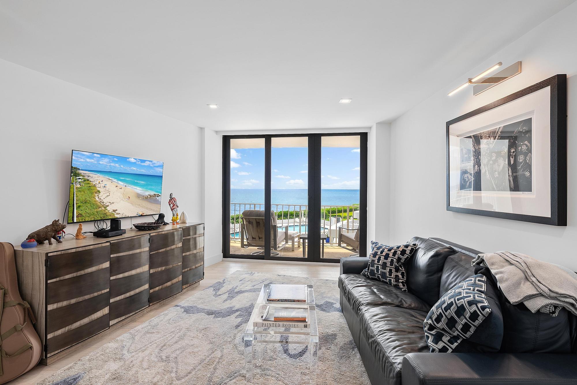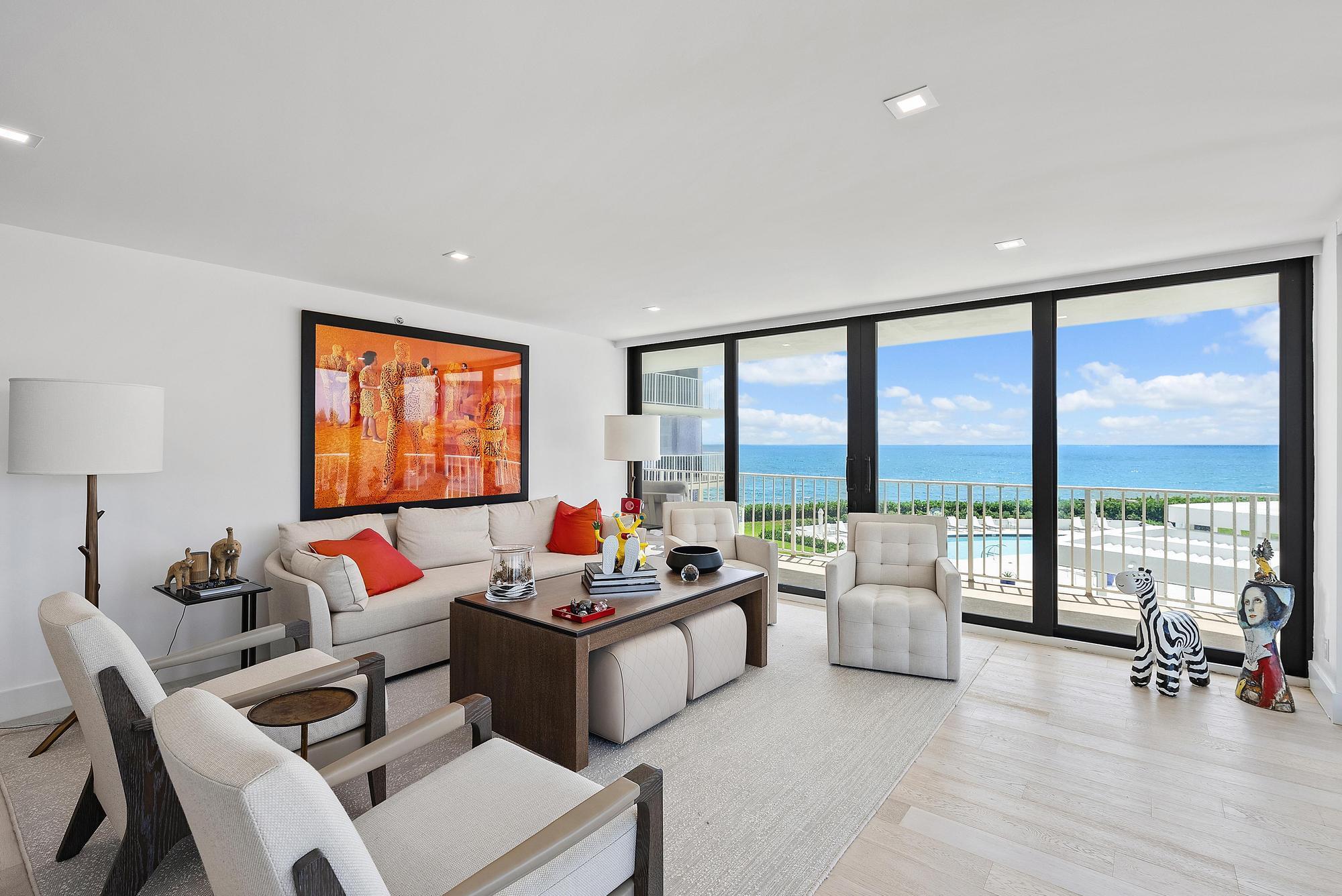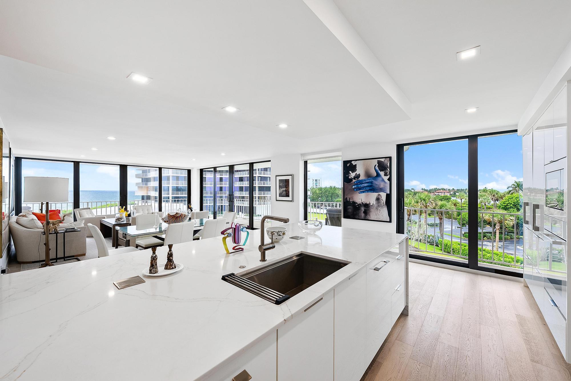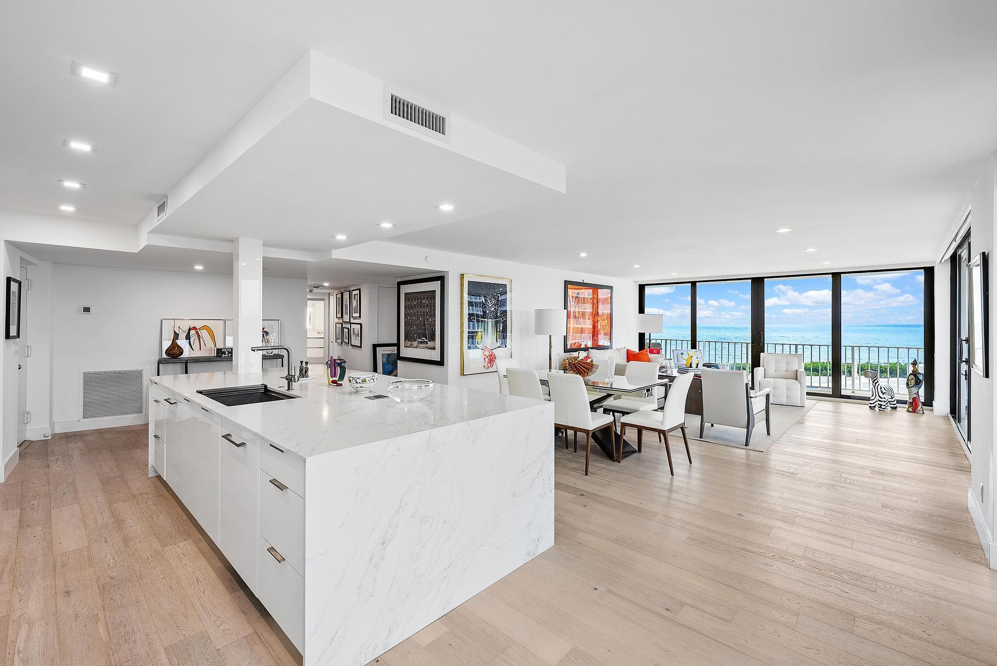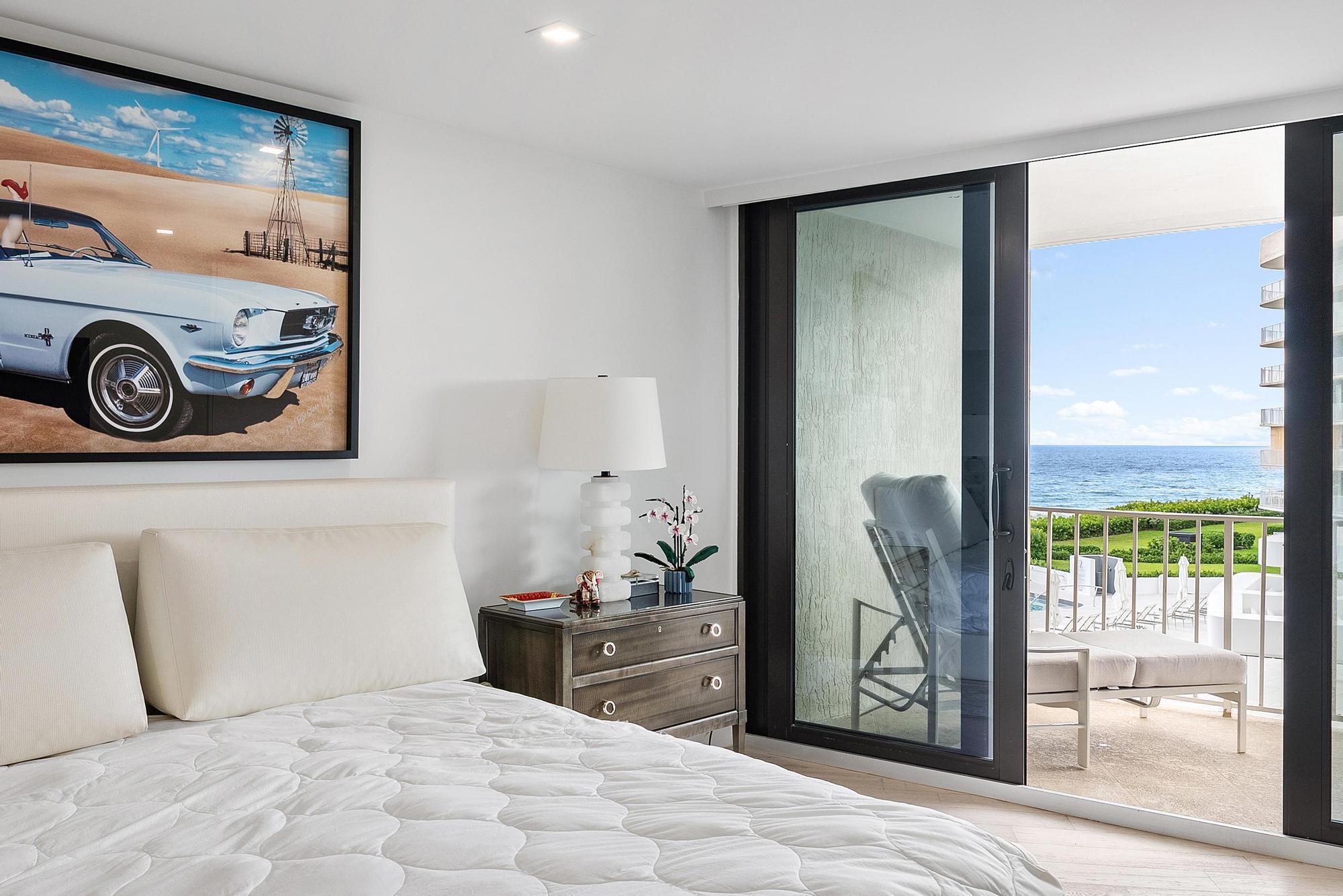 Wake up to the soothing sounds of ocean waves and breathtaking sunrises in this tastefully renovated 2-bedroom, 2-bathroom residence, with ocean views from every room. Featuring floor-to-ceiling hurricane impact windows and doors, enjoy stunning ocean views from every room. The home boasts hardwood flooring, recessed lighting, quartz countertops, and top-of-the-line Miele appliances. Custom-built in closets, including a dedicated space for glasses. The primary suite offers a spacious marble-clad ensuite bathroom with gorgeous brass fixtures and a extra-large walk-in closet with custom-built-ins.Facing southeast, the open-concept kitchen, dining, and living areas provide sweeping views of the ocean and the Intracoastal. This perfect property includes 1 garage space and a storage locker.