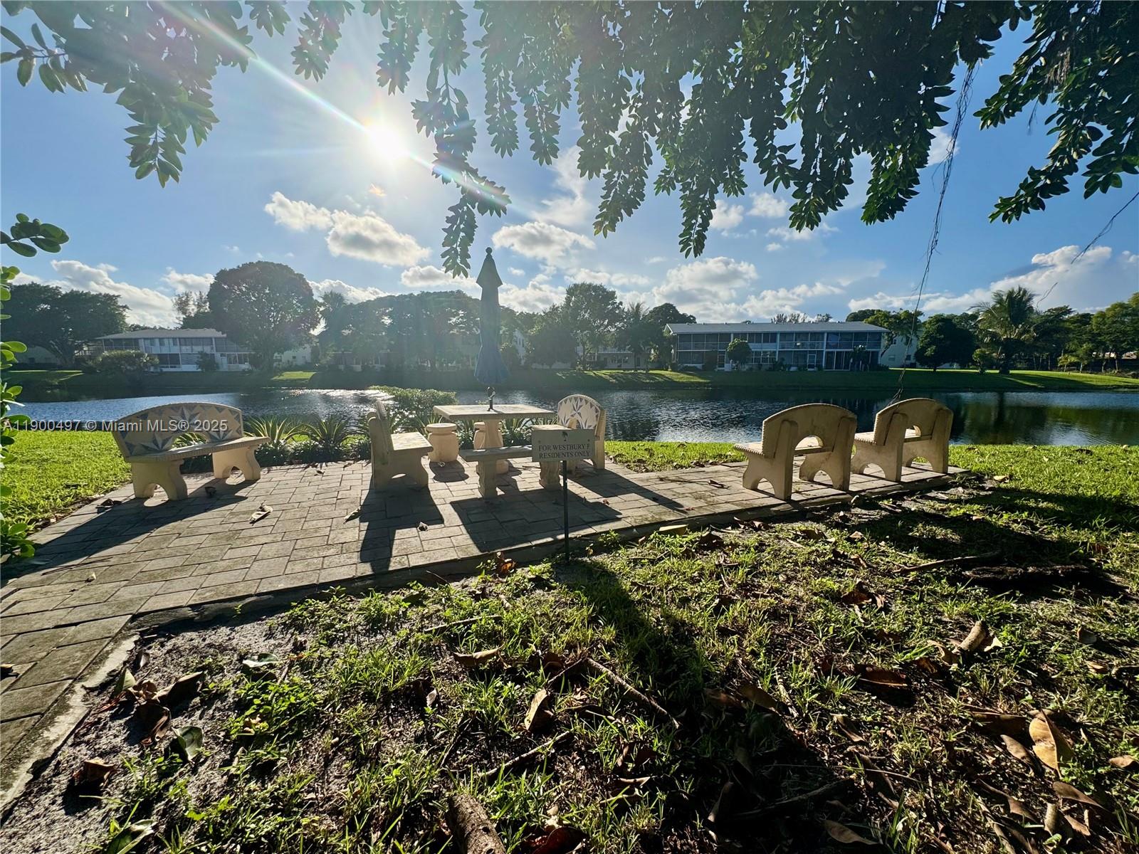 Don't miss the chance to own this lovely condo in Century Village. All tile,1 bedroom, 1- 1/2 bath with an oversized bedroom. The eat-in kitchen features, wood cabinets. A large bedroom easily fits a king size bed and furniture. Relax and enjoy the water view from your private enclosed patio with beautiful laminate flooring. The building also provides a patio by the lake, ideal for peaceful Florida evenings. Century Village offers resort-style living with endless activities, clubs, transportation services, and much more.
