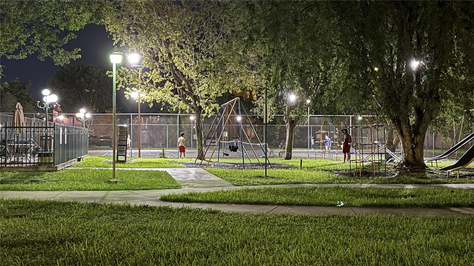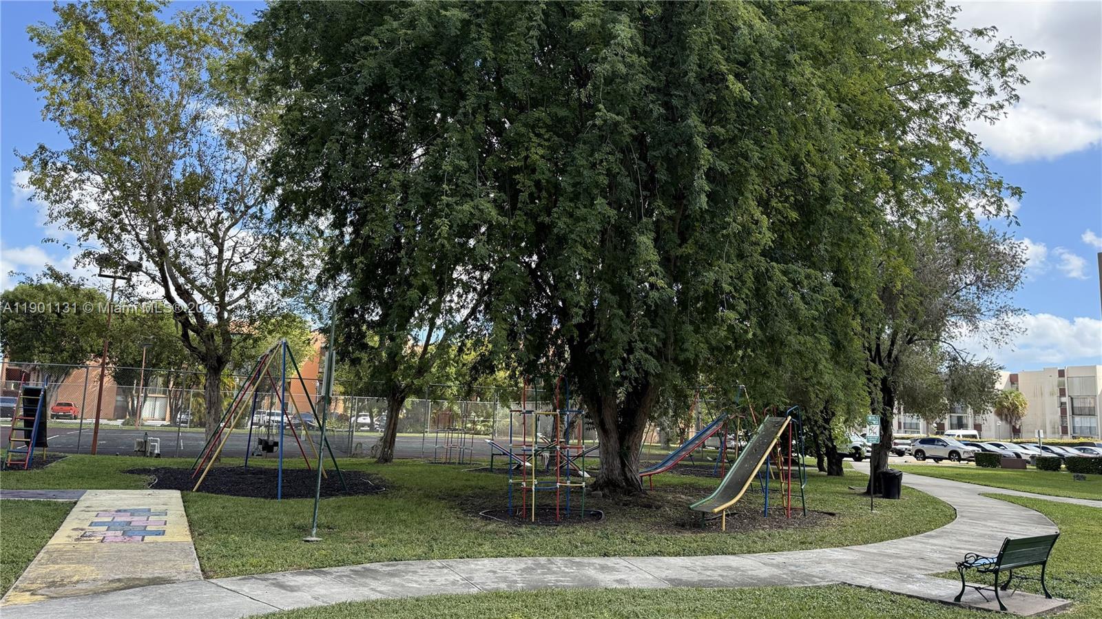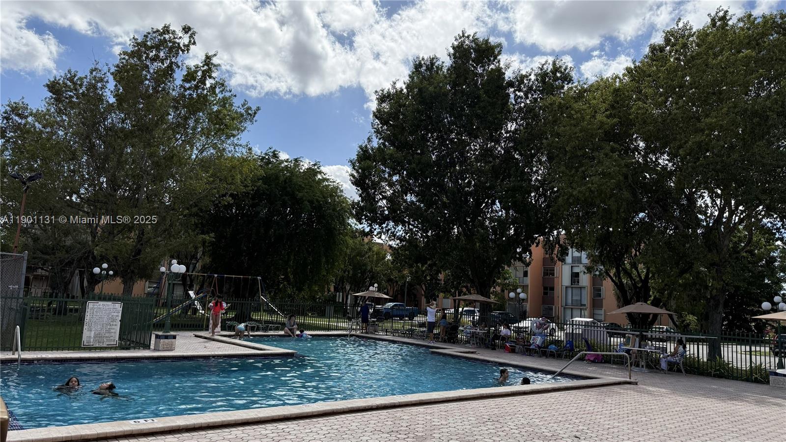 Newly renovated condo with 2 brand new bathrooms, new kitchen with recessed lighting, NO popcorn ceiling, and large windows overlooking trees, pool and club area. Condo has 2 spacious rooms with large closets, linen closet, a closet off of the living room, as well as convenient laundry area. It also has a den that can be used as an office or exercise area. Located in a gated community filled with trees and including a pool, a clubhouse with a gym area, a children's playground, lighted tennis courts, and basketball courts. Condo has passed its 40-year recertification. Central location across the street from Walmart, LA Fitness, and Chick-fil-A; close to FIU, Target, Marshalls, Ross, and many restaurants. Dolphin Mall, Midway Mall and International Mall are a short drive away.