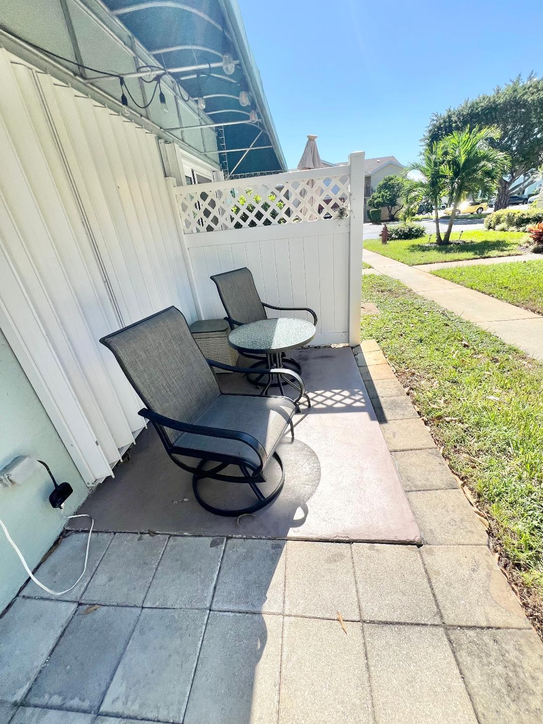 Private 1st floor unit with parking steps from your door. Newer appliances, Granite kitchen countertop, Marble in primary bath, extra built in under counter storage, Outside patio to soak up the Florida sunshine! Full size washer and dryer.Waterside offers so much including 2 swimming pools, tennis, pickleball, gated entry with security guard after 3pm. and activities of all kinds. Great location too...close to beaches, restaurants , I-95 and more.