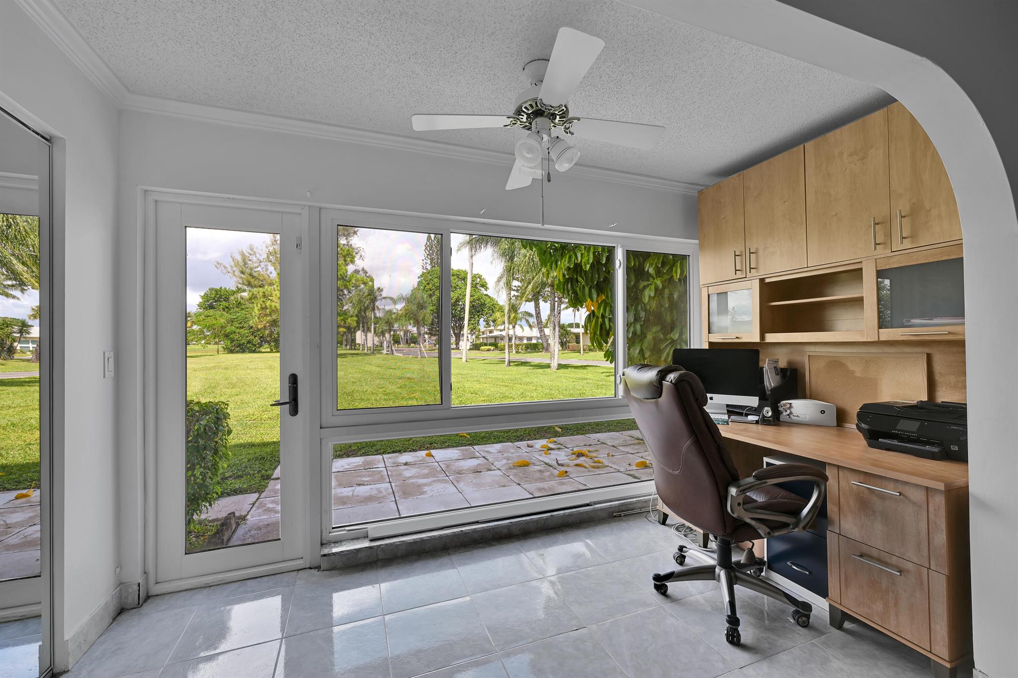 MOTIVATED SELLER! This well-maintained first-floor corner home offers 2 large bedrooms and 2 baths, both of which have been recently renovated. The enclosed sunroom, currently used as an airy office, fills the living space with light, while the open patio overlooks peaceful green space and the lake, perfect for relaxing or entertaining.Enjoy a modern kitchen with newer wood cabinets, granite countertops, GE Profile SS appliances, and an LG washer/dryer. Impact windows throughout the home offer both style and security.A brand-new clubhouse with pools, spa, cafe, gym, tennis, pickleball, and more is nearing completion, at no extra cost, & you can enjoy the current one right now!Just minutes from downtown Delray Beach, you'll be close to shopping, dining, entertainment and the ocean.