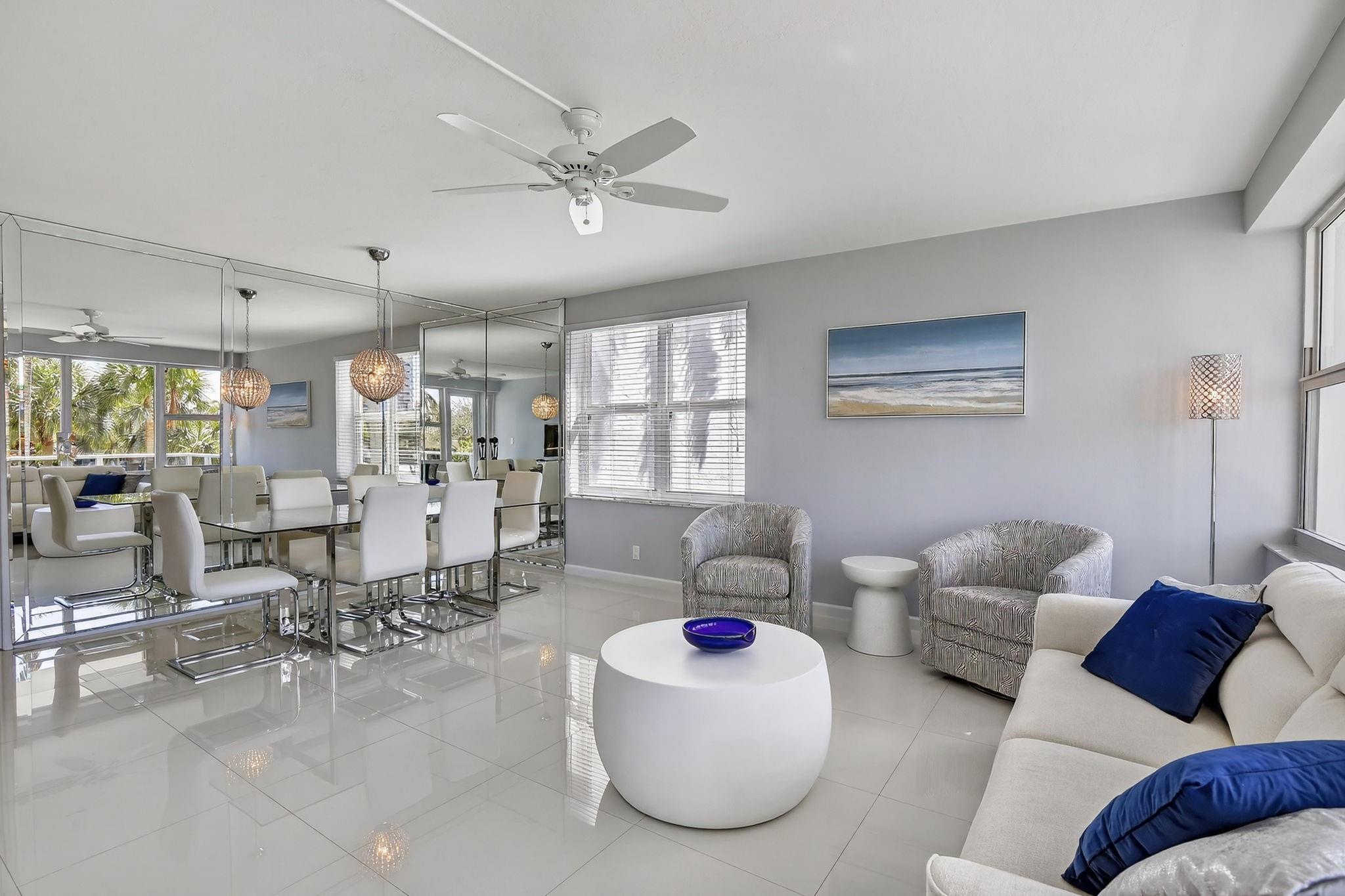 THIS BEAUTIFULLY UPDATED, CORNER APARTMENT, IN MINT CONDITION. HAS EXTRA WINDOW IN DINING AREA THAT OPENS INTO SPACICOUS BRIGHT LIVING ROOM, OVERLOOKING WELL MAINTAINED GARDEN GROUNDS. RENOVATED KITCHEN FEATURES SLEEK CABINETRY, GRANITE COUNTERTOPS, ALL STANLESS STEEL APPLIANCES AND A NEW REFRIGERATOR. NEWLY INSTALLED UNDER-COUNTER RECESSED LIGHTING HIGHLIGHTS THE COUNTERS. BOTH SPACIOUS BATHROOMS HAVE BEEN FULLY UPDATED WITH CONTEMPOARY FINISHES, BOTH OFFER EASY ACCESSABLE WALK-IN SHOWERS. THIS UNIT HAS BEEN FRESHLY PAINTED AND FINISHED WITH ELEGENT 24-INCH PORCELAIN TILE FLOORING THROUGHOUT, GIVING IT A CLEAN, COHESIVE LOOK. BUILDING HAS JUST COMPLETED MAJOR CONCRETE RESORATION WITH INSTALLATION OF GLASS BALCONIES. RESIDENTS ENJOY RESORT-STYLE AMENITIES WITH JUST A SHORT WALK TO BEACH.
