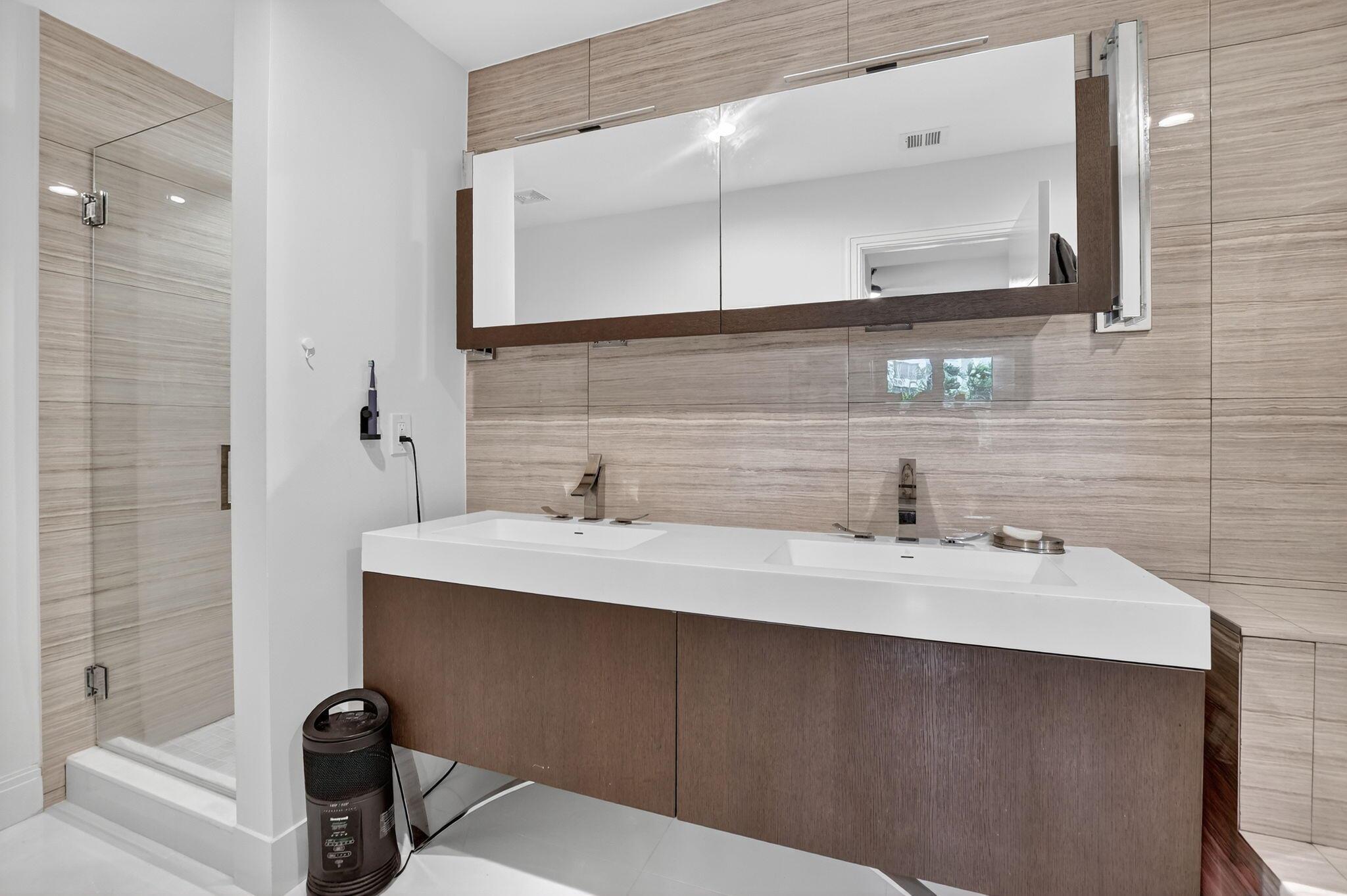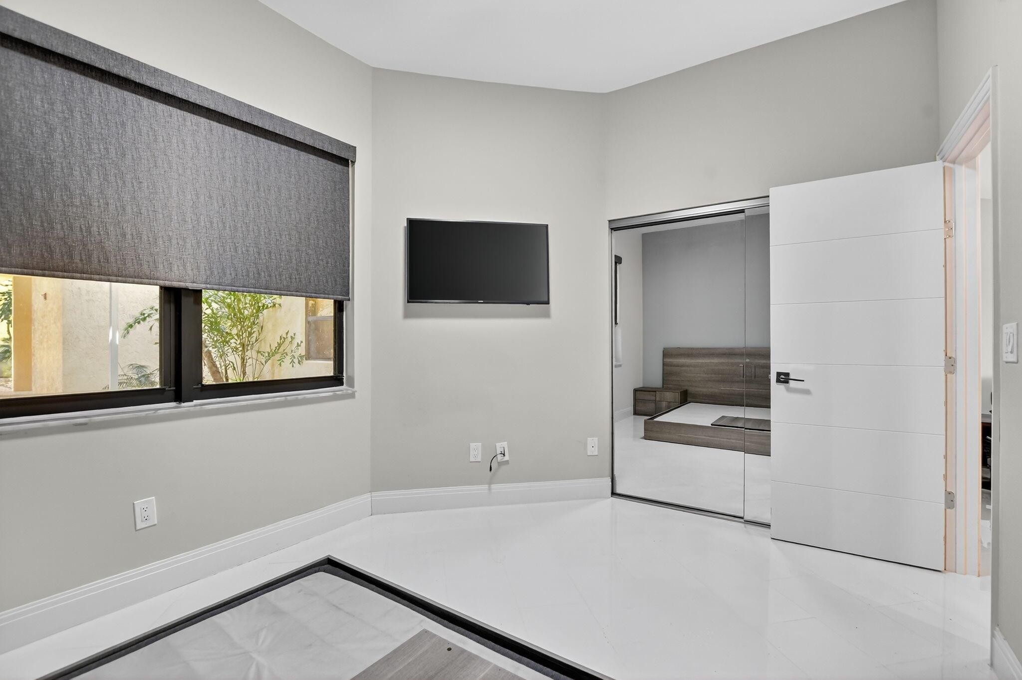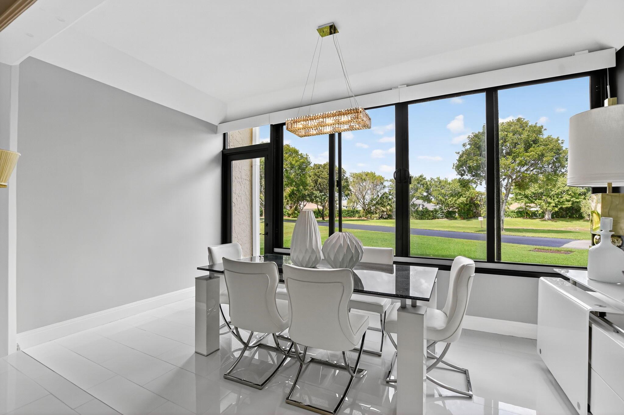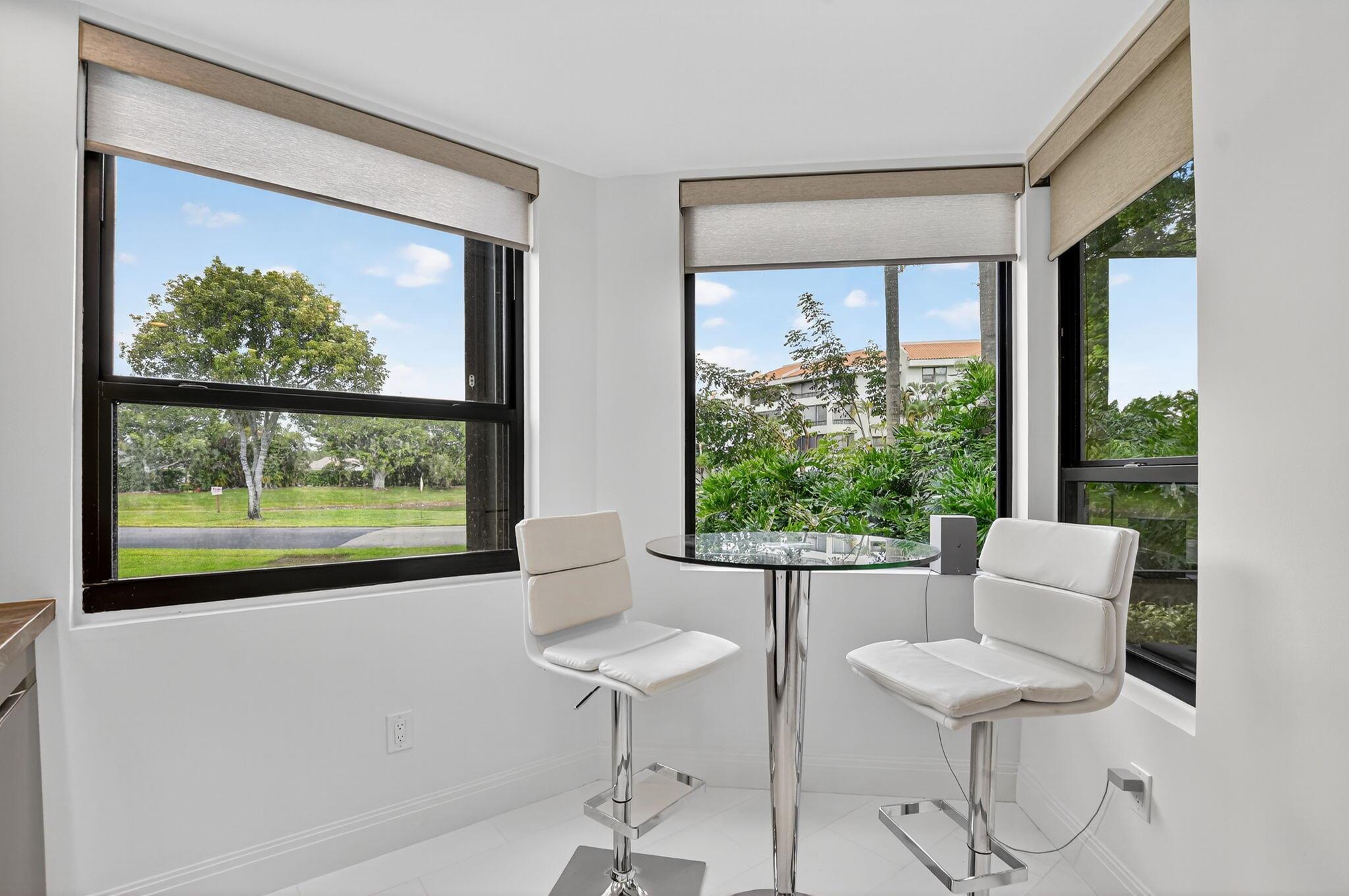 Fully renovated 2BR/2BA ground-floor corner condo in La Paz at Boca Pointe, an all-ages, guard-gated community with optional club membership. 1,636 total sq ft (includes Florida room & lanai) with no stairs or elevators required. Modern kitchen with white gloss cabinets, quartz leather counters, backlit stone geode pass-through, and Samsung appliances. Dining room opens to a glass-enclosed Florida room with walkout access and tranquil lake and garden views. Kitchen and primary suite open to a screened lanai. Porcelain tile floors, motorized blinds, full impact glass, and storm shutters. Primary bath features jetted tub, frameless shower, and double vanity. Guest bath with sleek stall shower. In-unit washer/dryer, A/C, assigned parking. Two pools, tennis, clubhouse, Covenient to ALL