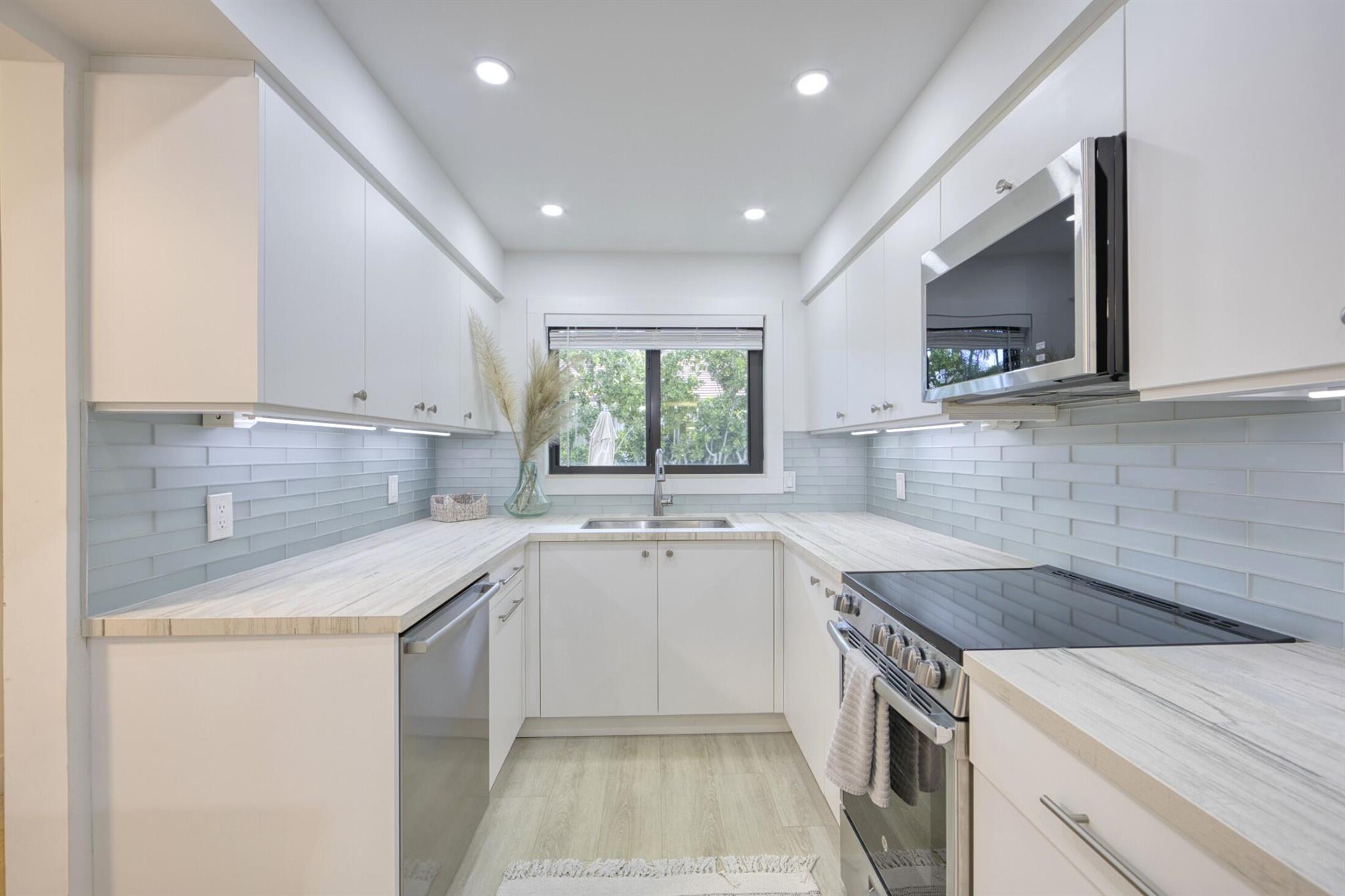 Experience the quintessential coastal lifestyle in this fully renovated ground-floor condo, just steps away from the tranquil shores of Juno Beach. Forget elevators and long walks, simply step out your door and feel the sand between your toes. Since 2021, this unit has been completely reimagined with a clean, beachy aesthetic from floor to ceiling. The new, modern kitchen is equipped with sleek stainless steel appliances, porcelain countertops, and a stunning sea glass backsplash that brings the ocean's palette indoors. With new hurricane windows and a recently replaced AC system, comfort and peace of mind are guaranteed. Enjoy the fresh, updated building, which recently replaced all its windows and resurfaced the pool, providing a pristine setting for your new life by the sea.