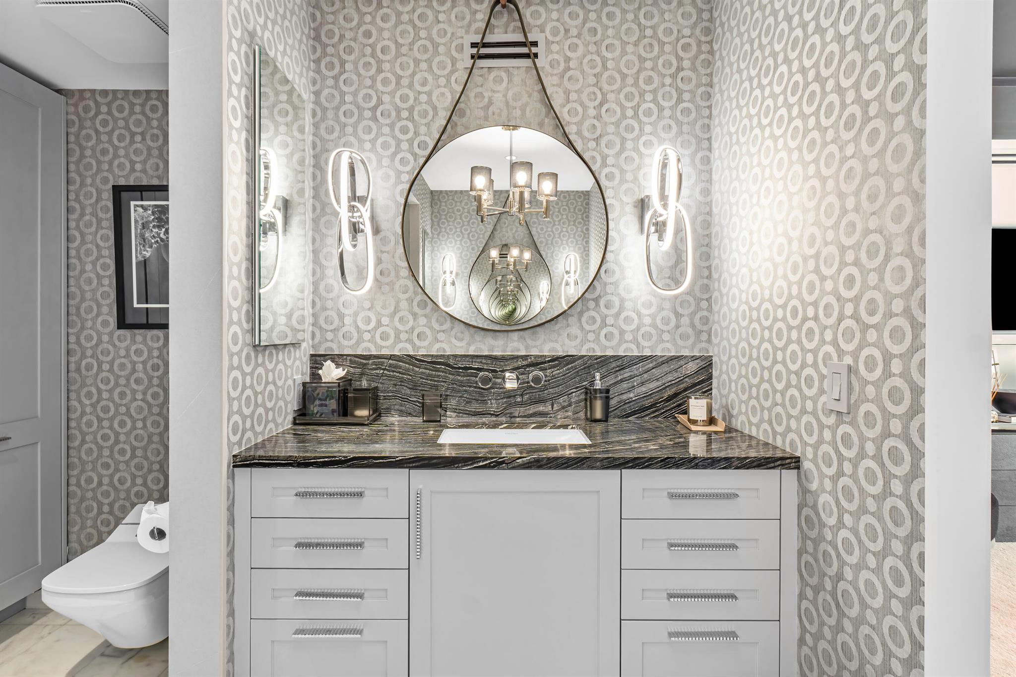Experience the ultimate in elegance and tranquility with this newly renovated corner residence, perfectly positioned on an exclusive and secure island in Palm Beach. Just steps from the pristine beach and town tennis center, this contemporary home is designed for those who appreciate refined living in a premier location. From the moment you enter, you'll be welcomed by an atmosphere of sophistication and serenity. The expansive open floor plan boasts soaring 9-foot ceilings, stunning Dolomite Bianco Italian marble, exquisite Venetian plaster walls, and state-of-the-art Lutron lighting--every detail meticulously curated for a luxurious lifestyle. Floor-to-ceiling impact glass doors bathe the interiors in natural light and open onto a sprawling wraparound balcony, where breathtaking