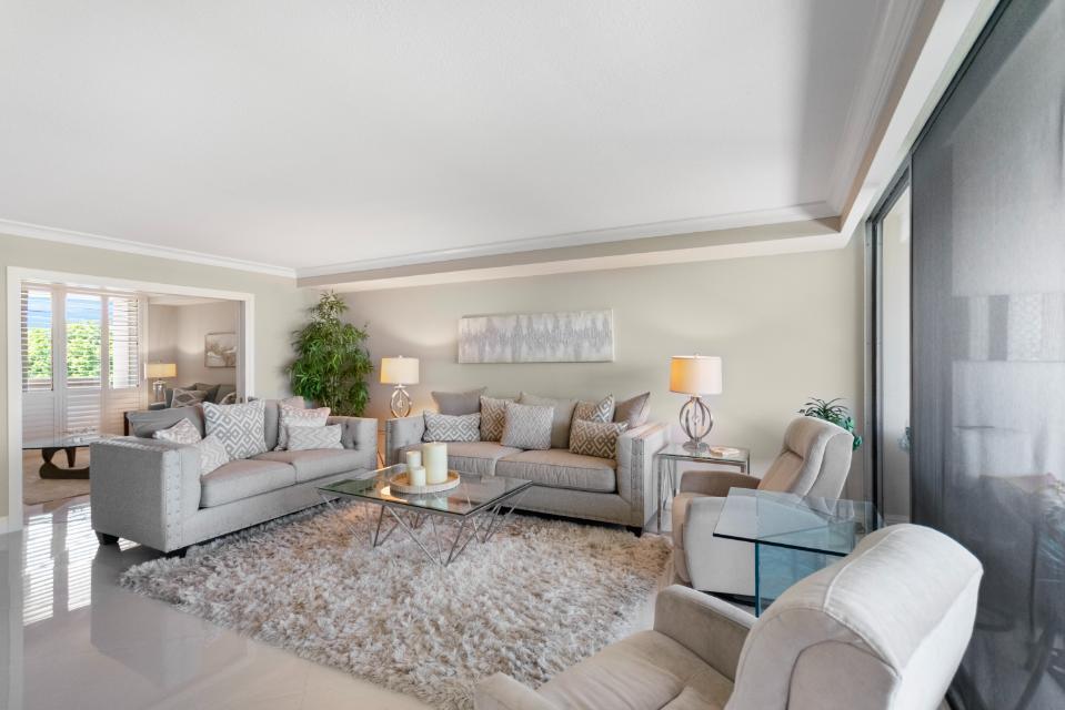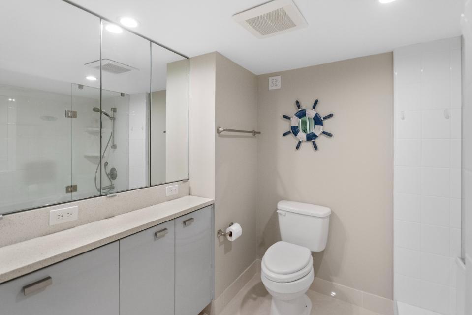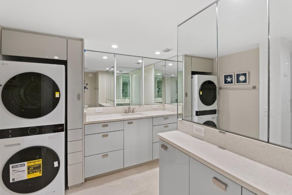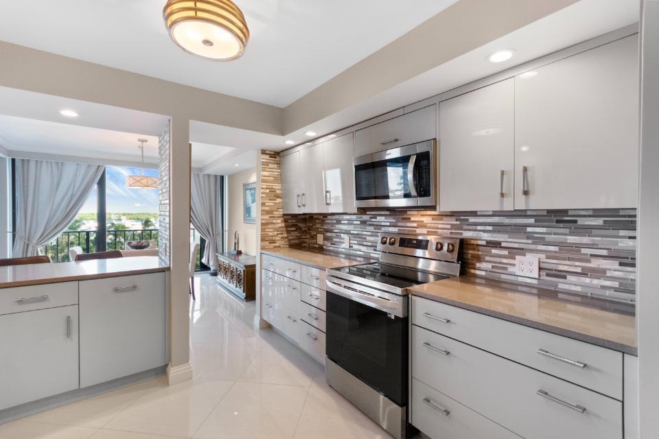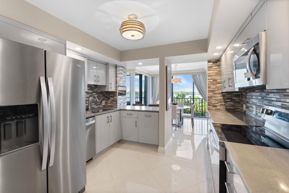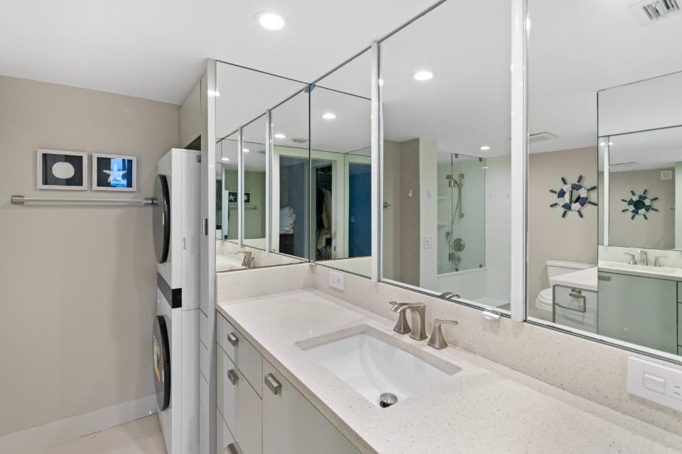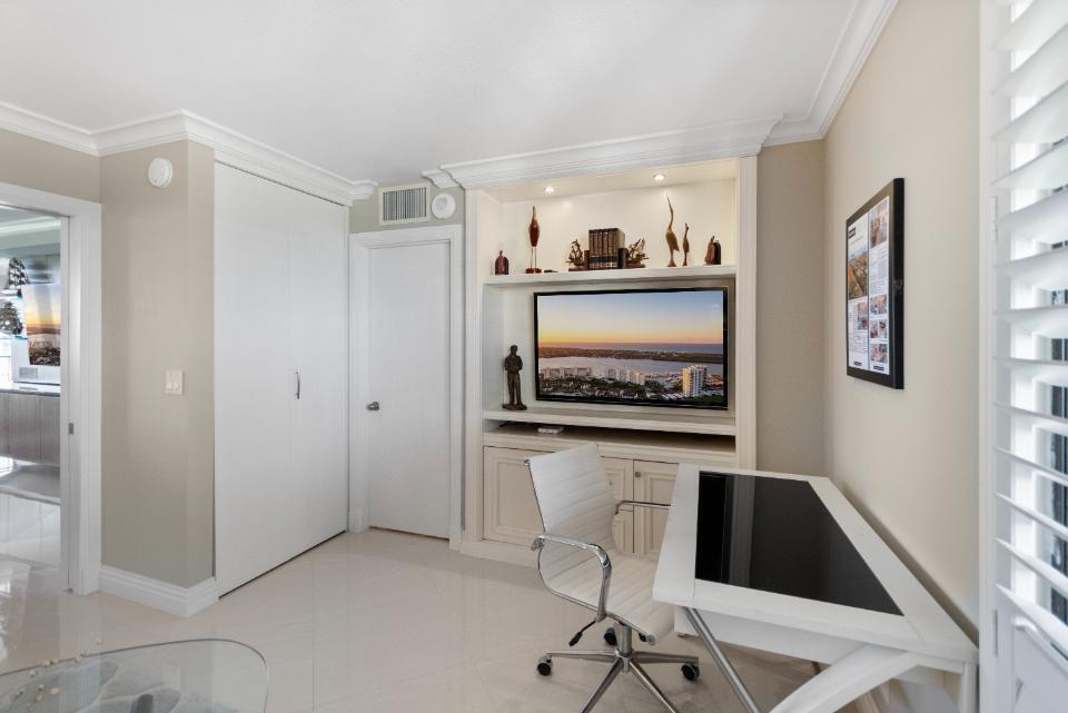 Tastefully renovated 2BR/2BA split-bedroom convertible floor plan in Quay South. This 5th-floor condo offers beautiful marina and Intracoastal views. The updated kitchen features modern cabinetry and stainless steel appliances. The spacious primary suite includes a walk-in closet, a tub/shower combo, modern cabinetry with ample storage, and a new washer and dryer. The guest bathroom has been upgraded with a walk-in shower.The convertible bedroom includes a closet and functions as a full second bedroom. Built-in entertainment centers in both the guest bedroom and living room add style and storage. Enjoy gorgeous views from every room and take in the sunrise from your private balcony.