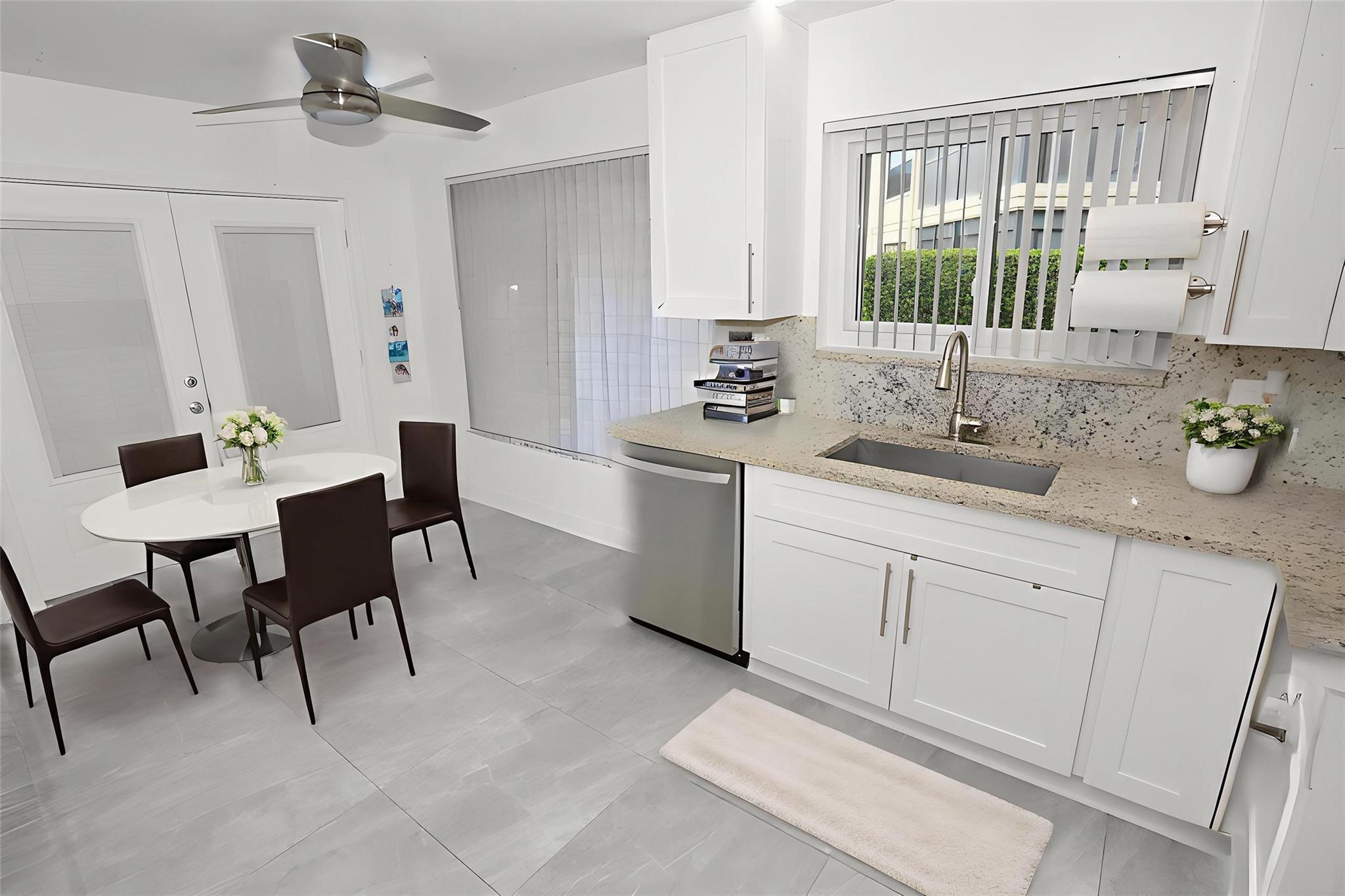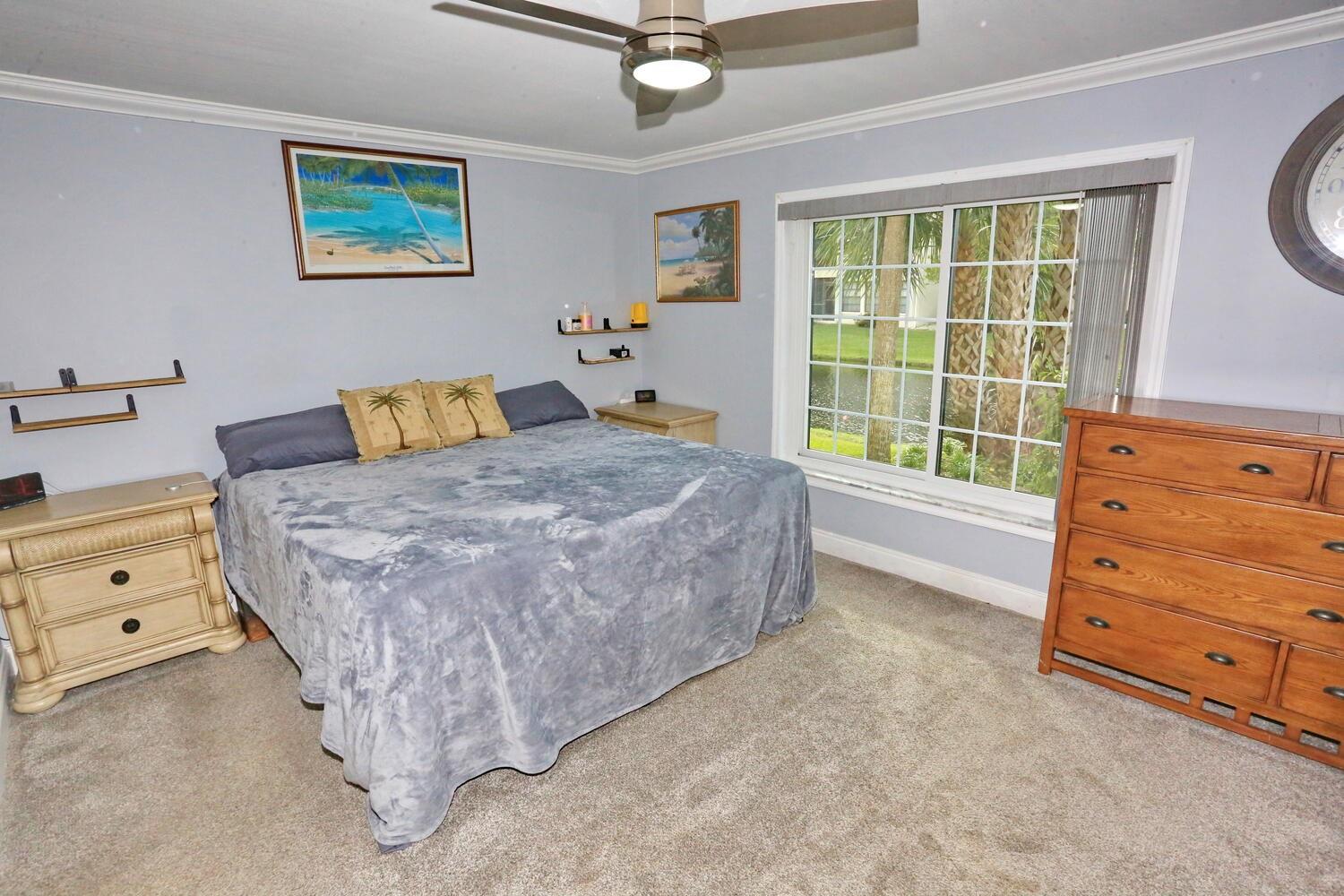 WELCOME HOME! Beautifully updated 1st-floor 55+ condo offering peaceful Florida living with amazing water & fountain views! This spacious 3-bedroom (one used as a den) home features a remodeled kitchen & baths, tile in main living areas and den, carpet in bedrooms. Enjoy the enclosed patio perfect for relaxing or entertaining. Crown molding, recessed lighting, shiplap accents, newer roof, updated windows, and accordion hurricane shutters add style and peace of mind. Plenty of storage throughout. Experience an active or social country club lifestyle with fantastic amenities—without the high fees! Close to shopping and easy access to Florida's Turnpike. One small pet up to 25lbs permitted. Rentals permitted after 2 years of ownership. It's a must see. STAND ALONE FREEZER DOES NOT CONVEY