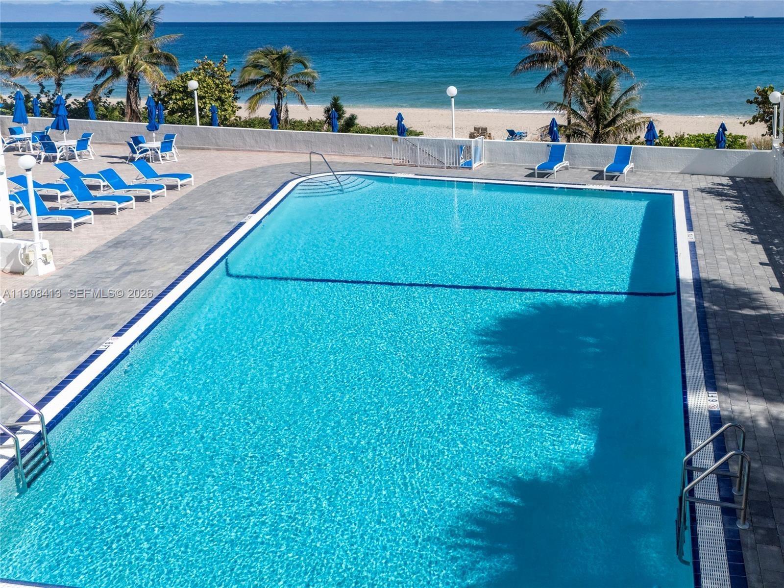 Seller Motivated bring offers. Resort-style living concierge/doorman. Two decks, pool, promenade, BBQs, tables, loungers. Updated unit, impact windows/doors, balcony w/view, 2 walk-in closets, fresh paint. New kitchen, SS appliances, glass backsplash, new bathroom granite-top vanity and carrara mable flooring. Ocean view from balcony. Amenities include gym, library/card room, community room, washer/dryer on floor, HOA $792 includes A/C, hot water, cable/internet, water/sewer, trash. Gated private beach with loungers, umbrellas, shower, car wash area. Free storage and ample parking. Garage parking for a fee. Fully reserved.