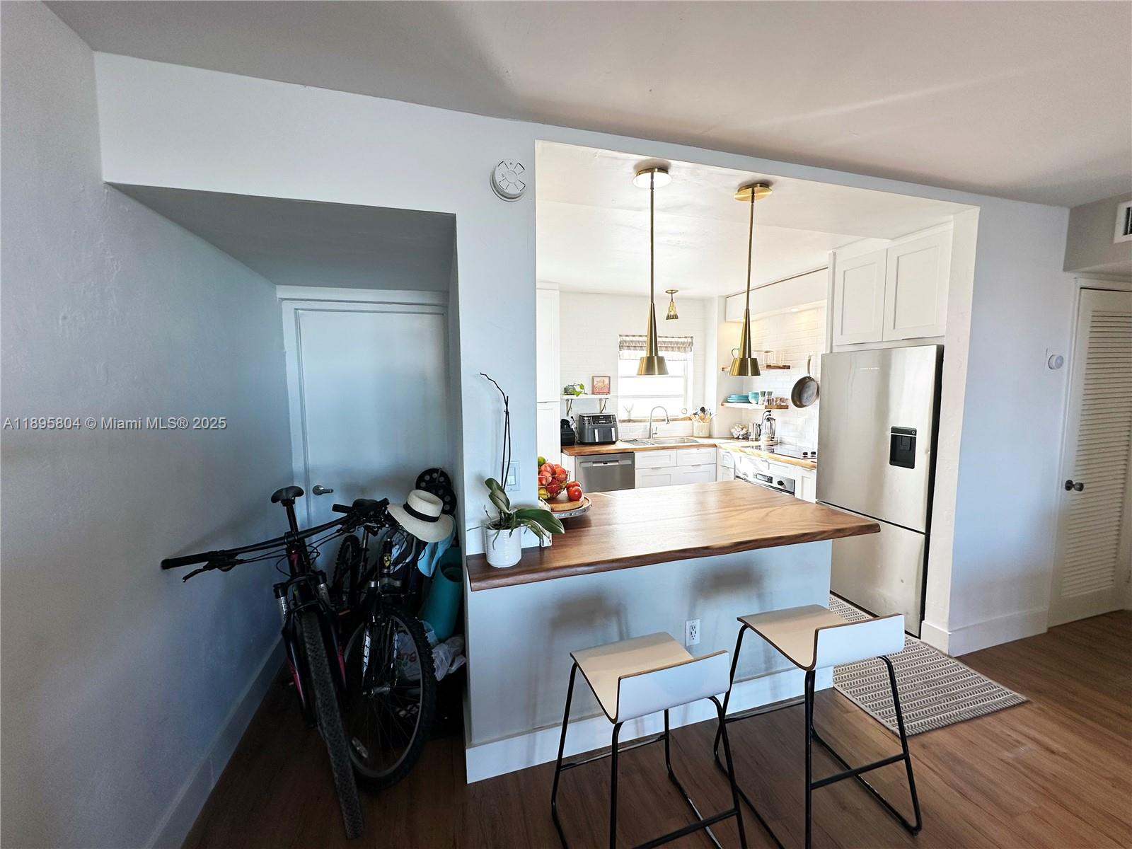 Bright and beautifully updated 2-bed/2-bath corner residence in Byron Gardens, located in the heart of North Beach. Three exposures fill the home with natural light. Spacious open-concept living area with contemporary finishes, stainless-steel appliances, and warm acacia wood countertops. PVC wood-look flooring throughout and generous closet space. Enjoy a large private balcony with city views — perfect for morning coffee or sunset breezes. Well-maintained building just three blocks from the beach, boardwalk, and oceanfront parks. Covered parking, pool access, and laundry conveniently located right outside your door. Building has been inspected by a lender and is eligible for conventional financing.