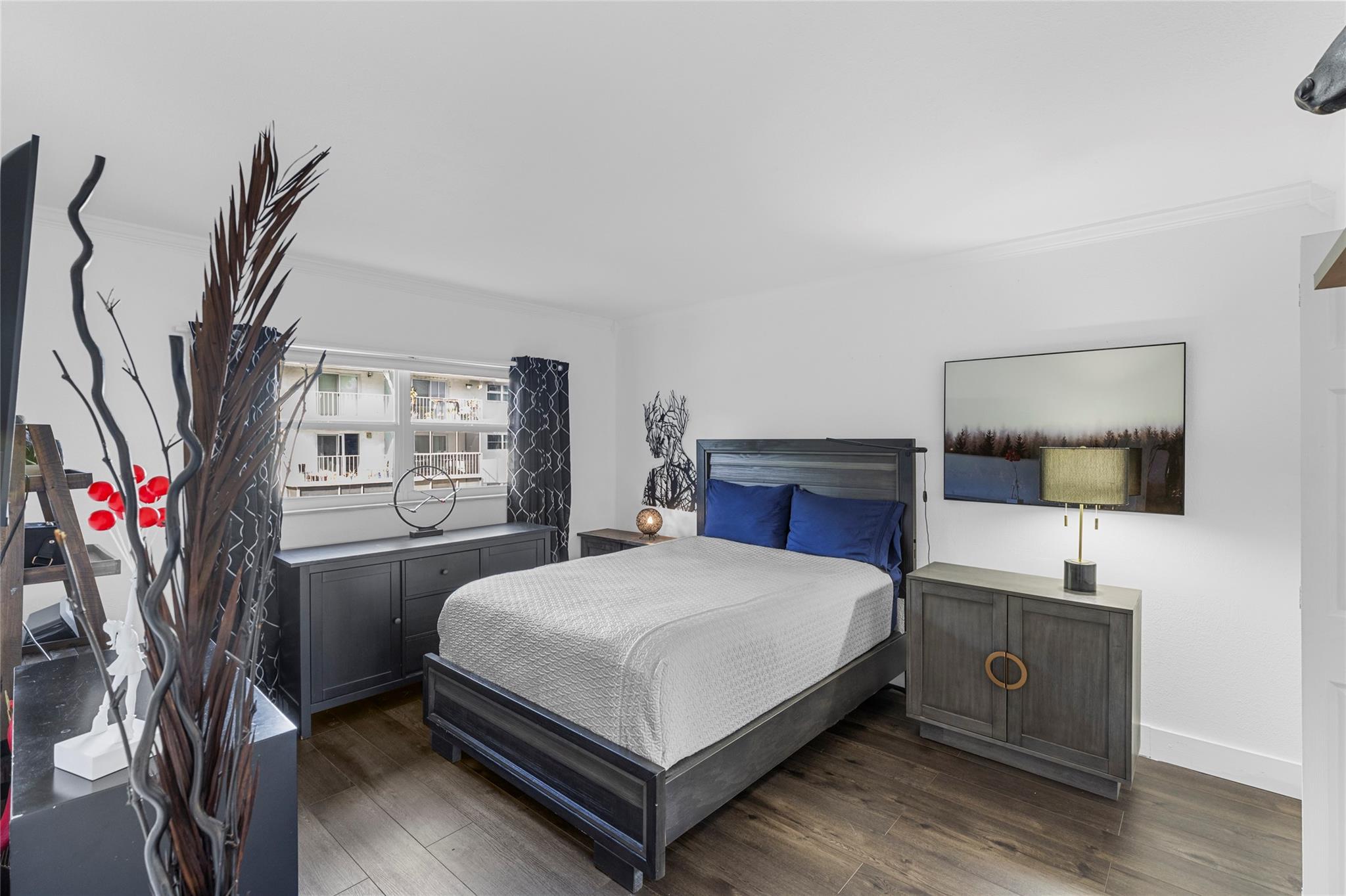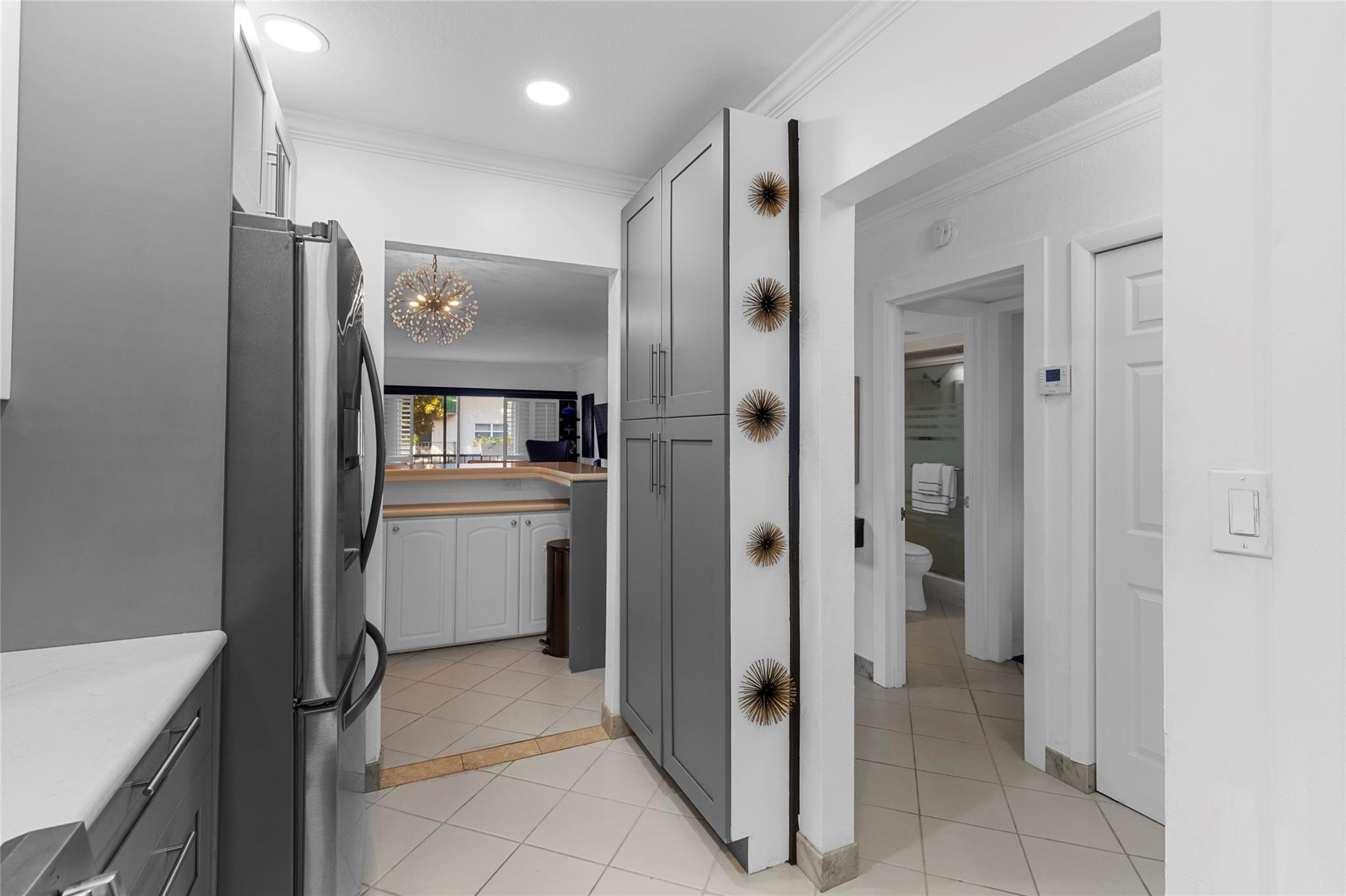 Enjoy serene water views from this bright and airy corner unit featuring two desirable bedrooms with it on private bath, split layout for added privacy. The remodeled kitchen boasts sleek stainless steel appliances, a pantry closet, and contemporary finishes. Both bathrooms have been tastefully updated, complementing the unit’s fresh, modern feel. Additional highlights include newer A/C system and upgraded electrical panel, energy-efficient tankless water heater, stylish built-in bar, perfect for entertaining. Hidden Harbor is a quiet gated community that offers a host of amenities, including secure entry, elevators, an upgraded fitness center, heated pool with a beautiful brand new grill area and a smoker, and relaxing sauna. Unit comes with an assigned parking space.