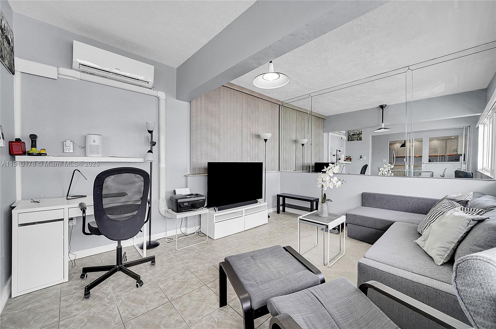 Enjoy the sunshine state weather in this beautiful 2 bedrooms 1 full and 1/2 bathrooms corner unit in the 55+ community of Diplomat Gardens. Located East of US1, it offers proximity to the beach, International restaurants, Malls and major highways. Recently upgrades include new lighting, appliances, 2 mini splits ac units, impact windows with lots of natural light. This complex has very low maintenance fees and it has lately installed a new heated swimming pool. Other amenities include bbq area, shuffleboard, laundry facilities and assigned storage locker. Fully furnished with full price offer. No rentals or pets allowed. Come and check it out for yourself.