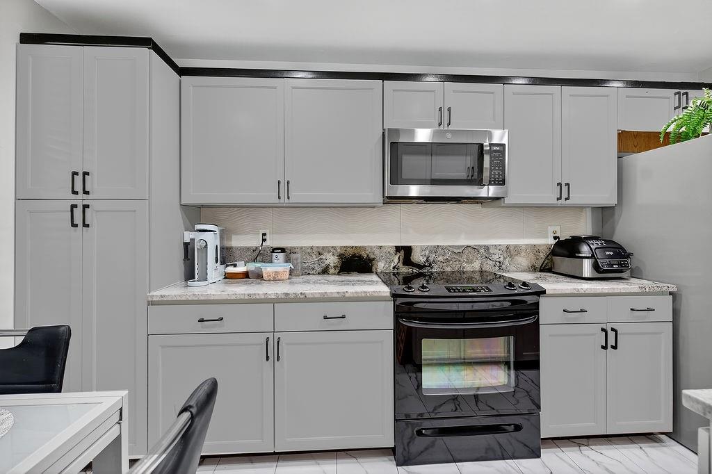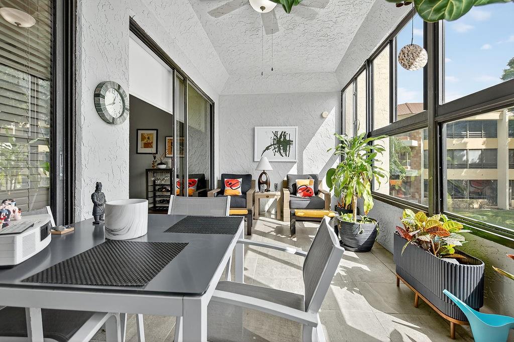 Beautifully updated La Paz condo offered fully furnished at $425K or $399K unfurnished. Features include recently refinished Brazilian cherry wood floors, a 2024 kitchen renovation with granite countertops & 2025 flooring, & very high ceilings—approximately 9 ft in the primary suite. Both bedrooms feature custom-outfitted closets; the primary bath offers a tub and separate shower. Impact windows throughout with accordion shutters on interior sliders. Appliances: fridge 3 yrs, dishwasher < 1 yr, microwave 3–4 yrs, stovetop 6–7 yrs. Water heater 5 yrs, HVAC under home warranty (CAC). Community amenities include 2 pools, tennis, pickleball & hot tub. The building is well-maintained & membership is optional. Can lease ASAP! Check out the video walk through tour!