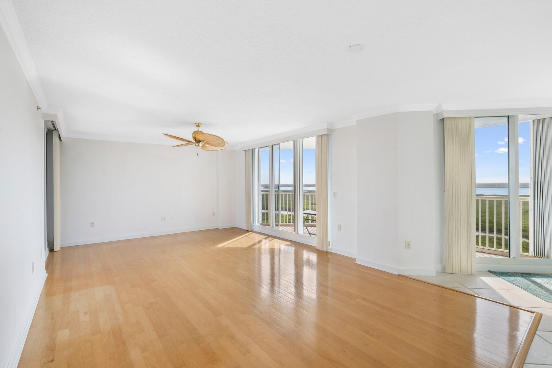 MOTIVATED SELLER! Stunning Southwest corner penthouse with endless Ocean & River views! Crown molding throughout, wood floors in living room, master & 2nd bedroom, electric shutters, and custom California Closets. Deeded garage included with no pending assessments. Enjoy coastal living with deeded beach access, pool, sauna, fitness room, tennis, pickleball, kayak launch & media room. Located on North Hutchinson Island just minutes from Vero Beach & Palm Beach.