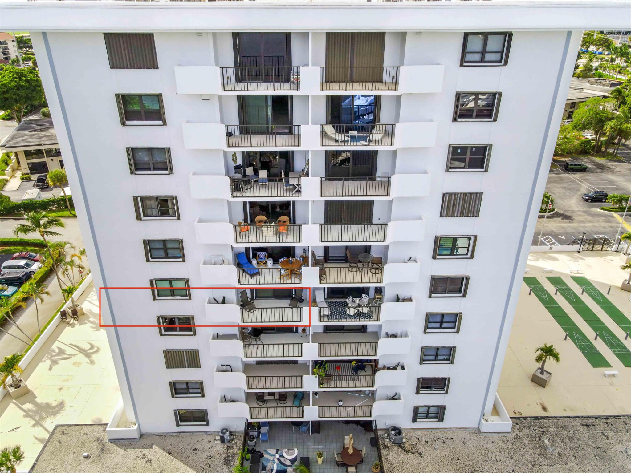Prepare to be captivated by the sweeping, unobstructed waterfront views from this stunning, high-floor condominium. The private balcony is an absolute retreat, offering incredible views of the Intracoastal Waterway, a bustling community marina filled with yachts, and the lush preserve beyond, and complete with impact windows. The balcony itself is a spacious, private space perfect for outdoor dining or morning coffee, featuring a dramatic compass rose wall accent.
