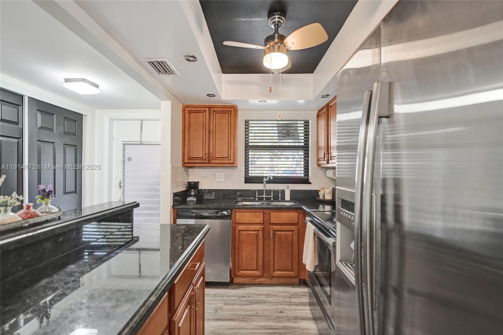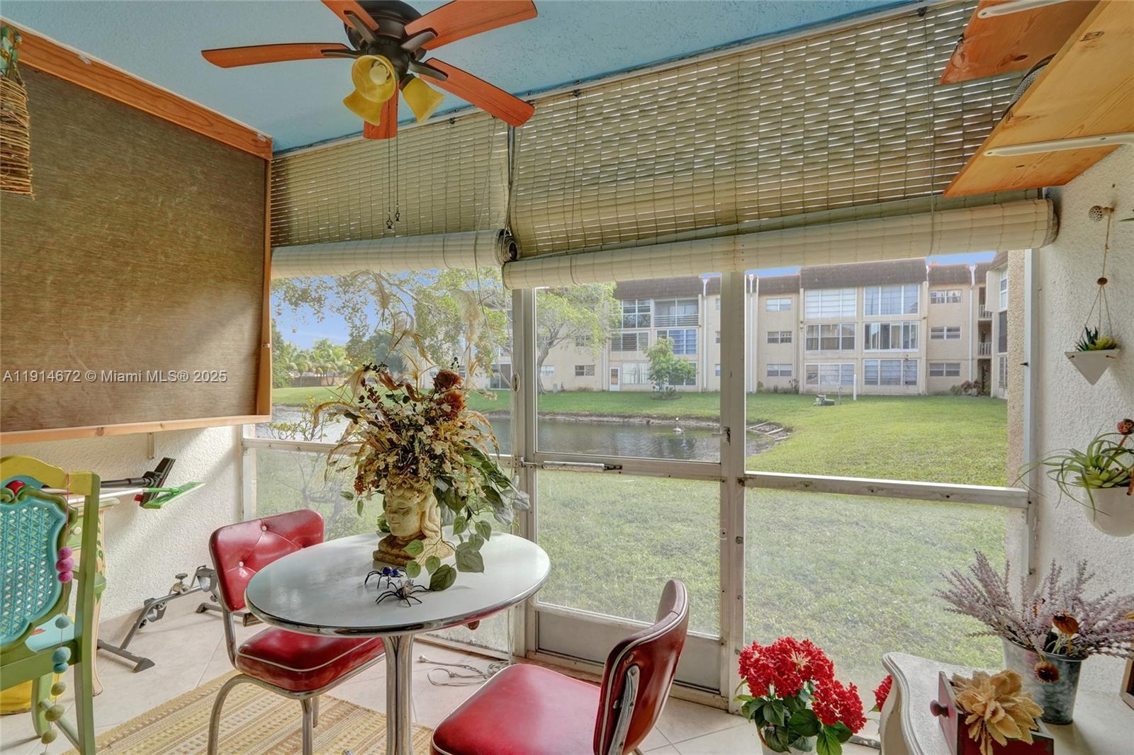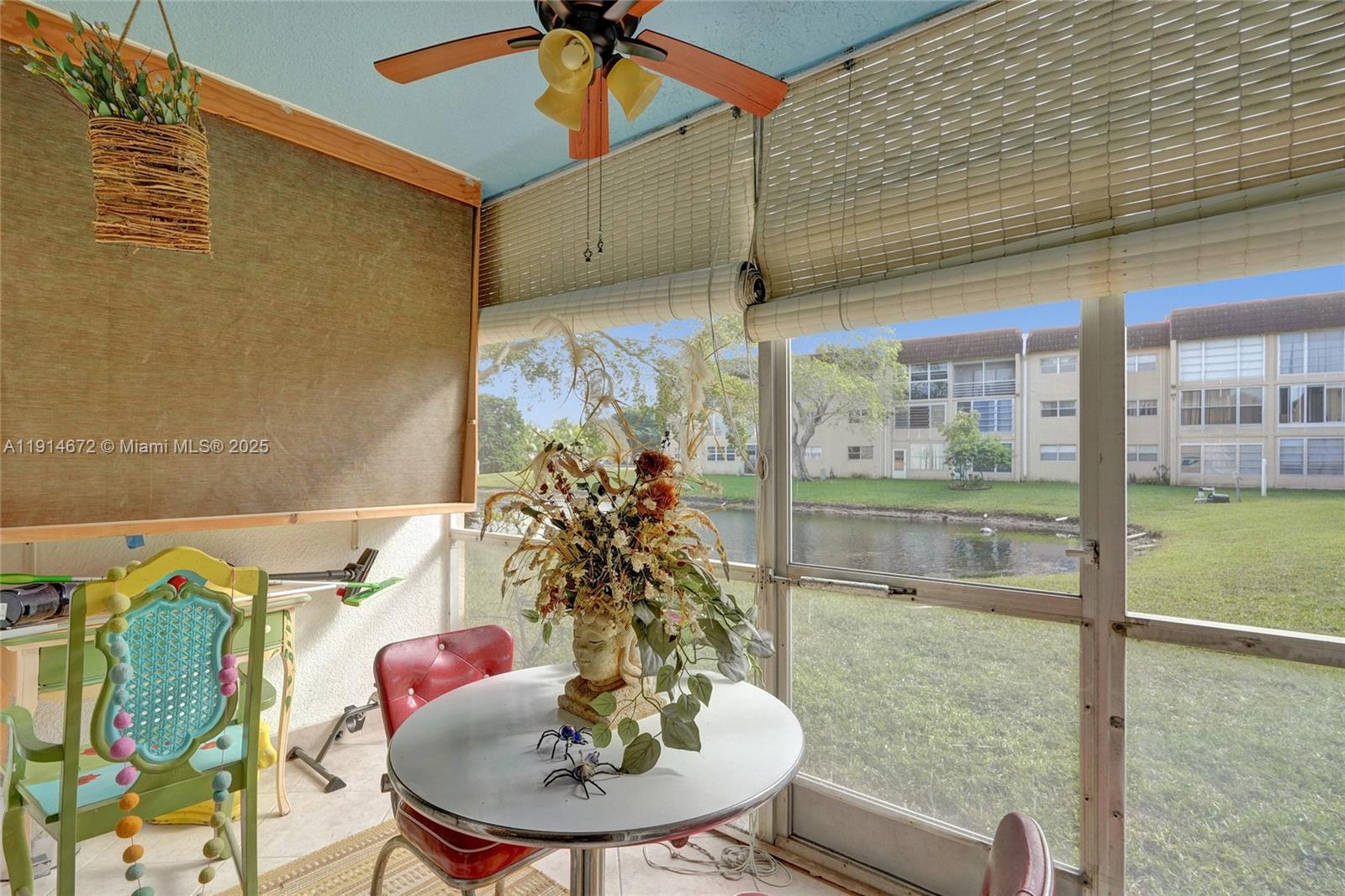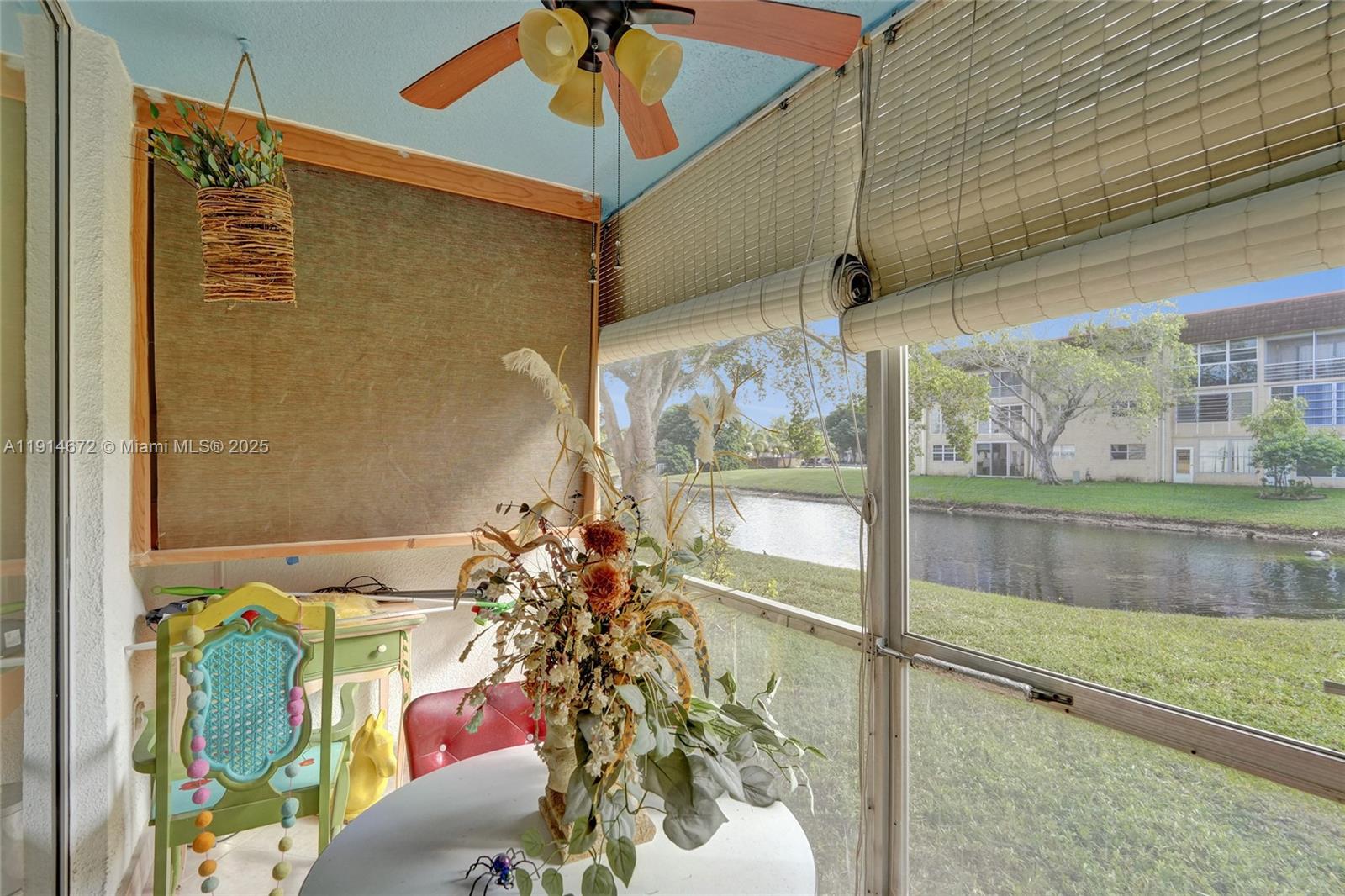 Gorgeous updated 1st-floor corner unit with stunning lake views in Sunrise Lakes Phase 3 (55+community). Features Gourmet kitchen w/ granite counter tops, wood cabinets & SS appliances. Split-bedroom layout with a spacious primary suite, w/ huge walk-in closet + extra closets; updated bath w/walk-in shower. Second BR w/walk-in closet; remodeled guest bath. High-end waterproof laminate in living areas, tile in bedrooms. Screened porch overlooking the lake. New impact windows 2025 & New roof 2024. Trane A/C 2006, Water heater 2024, Microwave 2 years. Amenities: multiple pools, private golf, clubhouse, game room, gym, movies, bingo, storage room, common laundry, assigned (steps away from front door) + ample guest parking . Close to shopping, dining, Sawgrass Mills, airport & major highways.
