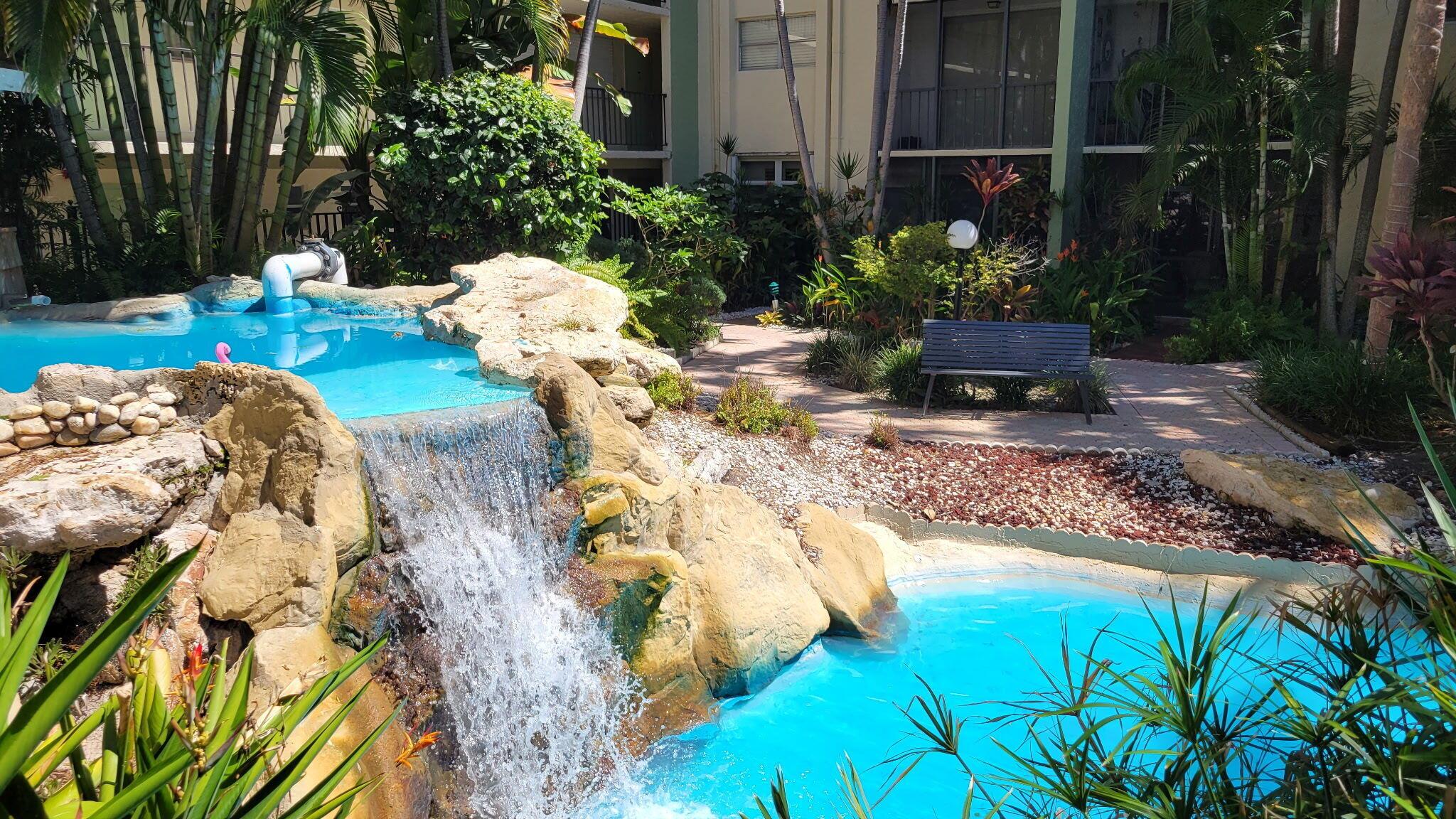 Welcome home to the resort style living FIRST FLOOR condo in East Fort Lauderdale, located just minutes from the beach. This 2 bed 2 bath property is move in condition, with updated bathrooms and a beautiful view of the courtyard with sounds of the waterfall! Walk right out the back patio and be a few short steps from the pool, gym, and walk up bar. You have everything you will need in the centralized location in this complex.