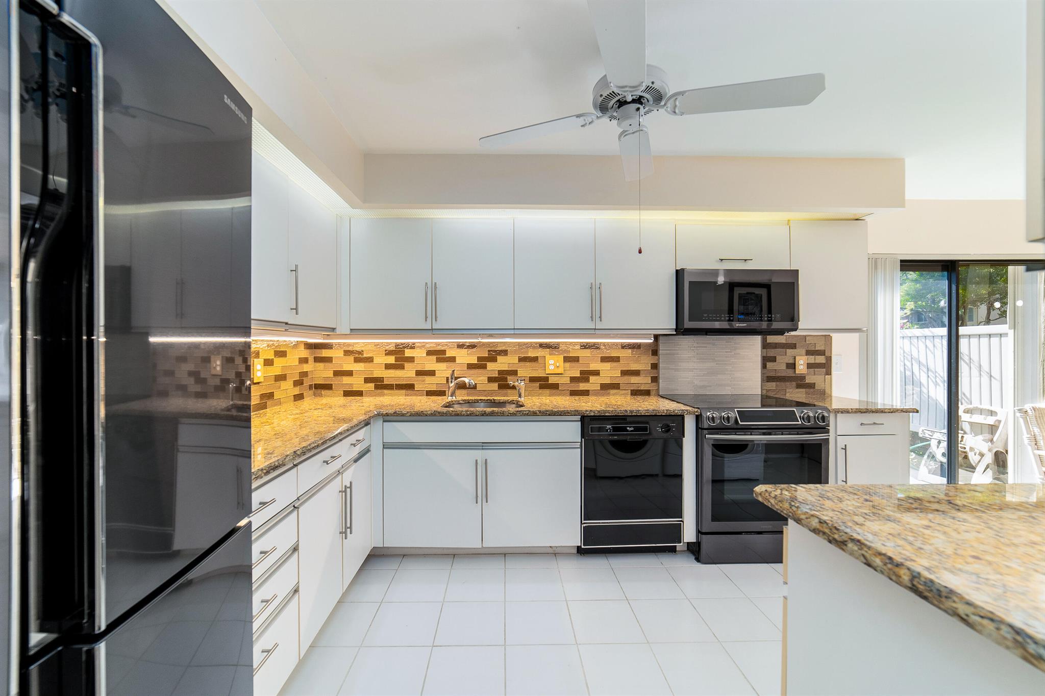 This spacious 1,809-square-foot condo offers sweeping golf course and lake views, three bedrooms--one that can serve as a convertible den, granite counter tops in the kitchen, and two beautifully updated bathrooms. Located on the ground floor, it provides comfortable, convenient access to the outdoors. Inside, abundant natural light fills the living spaces, while the private screened patio overlooking the golf course and wildlife, is perfect for al fresco dining and enjoying Florida's beautiful weather. Off the kitchen and dining room is a large private patio ideal for grilling and outdoor entertaining. There is also a community pool and clubhouse minutes away.